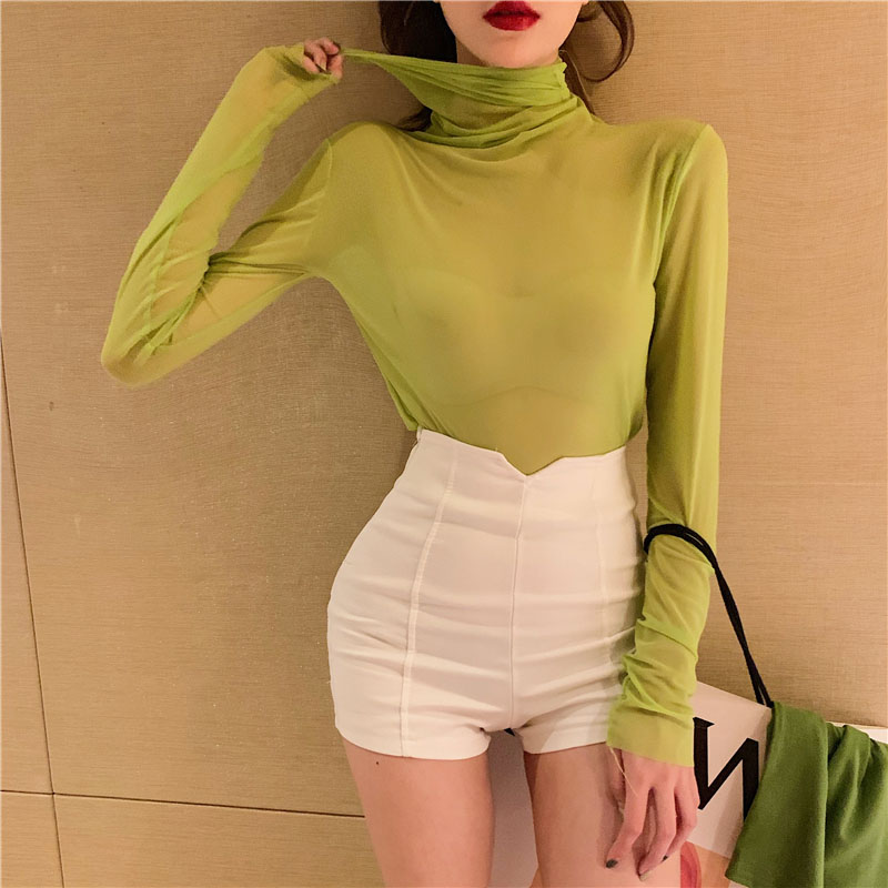 马卡龙网纱打底衫女春秋百搭内搭t恤长袖上衣薄紫色黑色白色