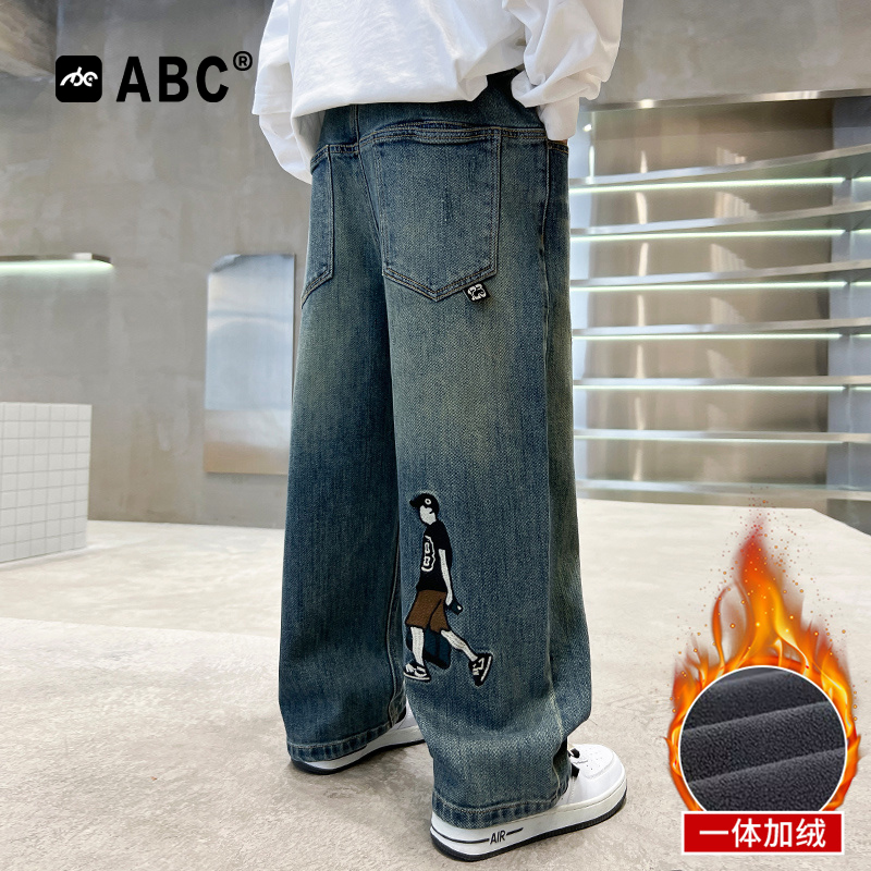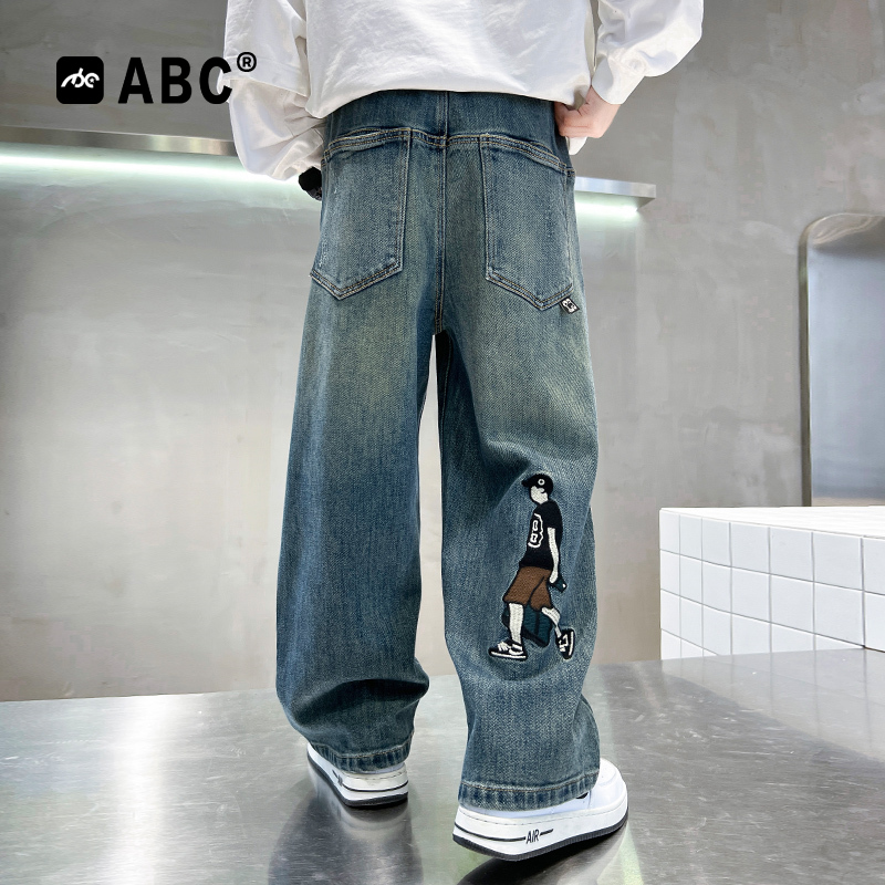 ABC品牌童装男童春秋牛仔裤中大童秋季阔腿裤儿童长裤男孩裤子潮
