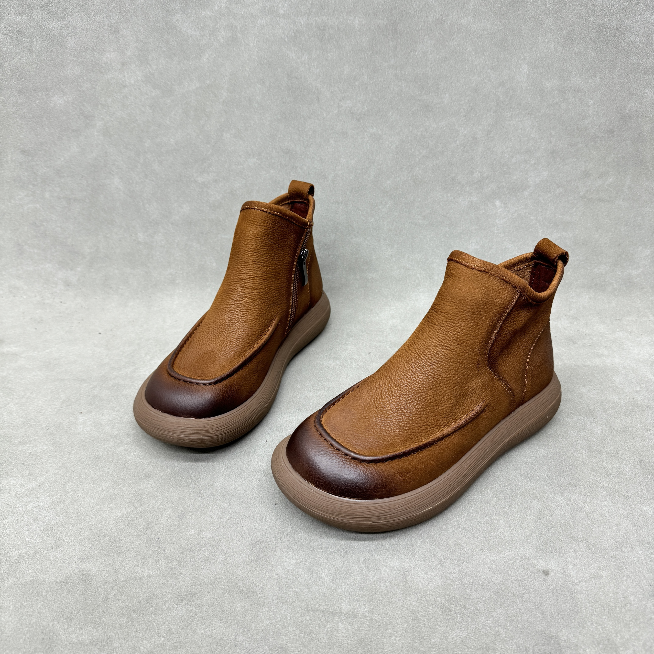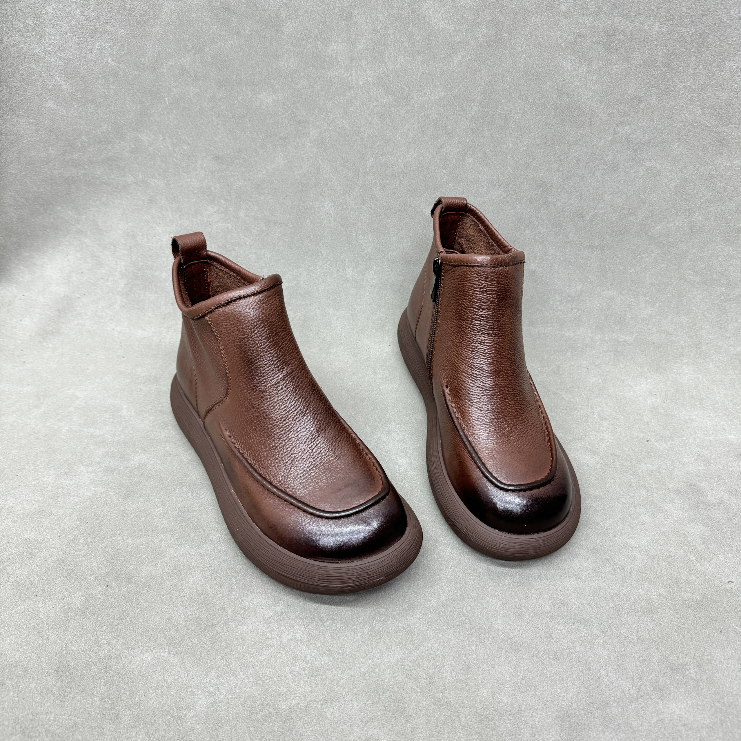 且朴高帮橡胶底透气舒适女新款休闲鞋头层牛皮单靴真皮软皮软底鞋