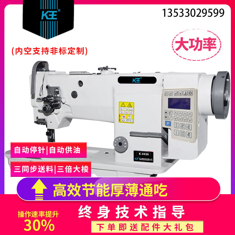 K王电脑直驱DU三同步双针车厚料汽车脚垫座垫沙发加长款单双针车