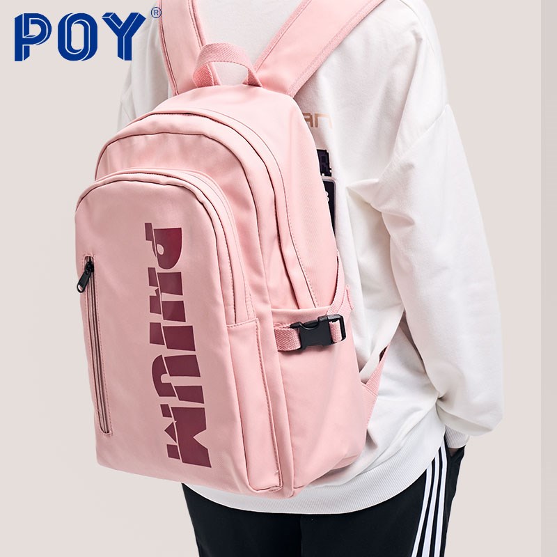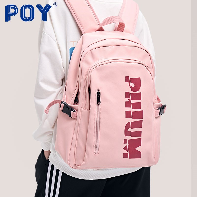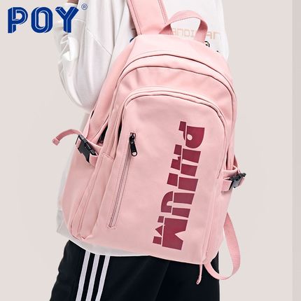 POY双肩包女大学生高中初中生女生粉色书包大容量电脑包旅行背