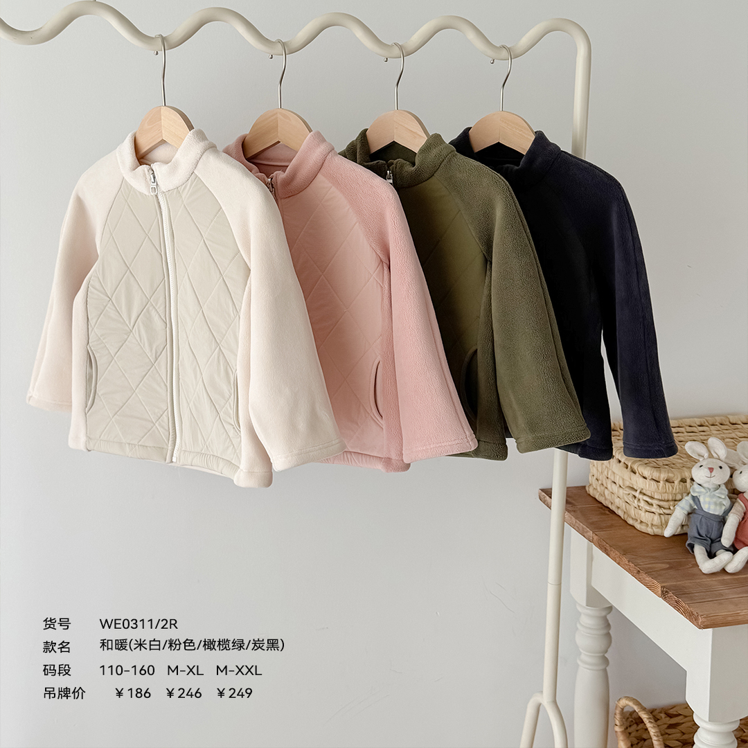 粒粒仔2025秋冬新款男女童摇粒绒保暖上衣立领外套加厚儿童夹克衫