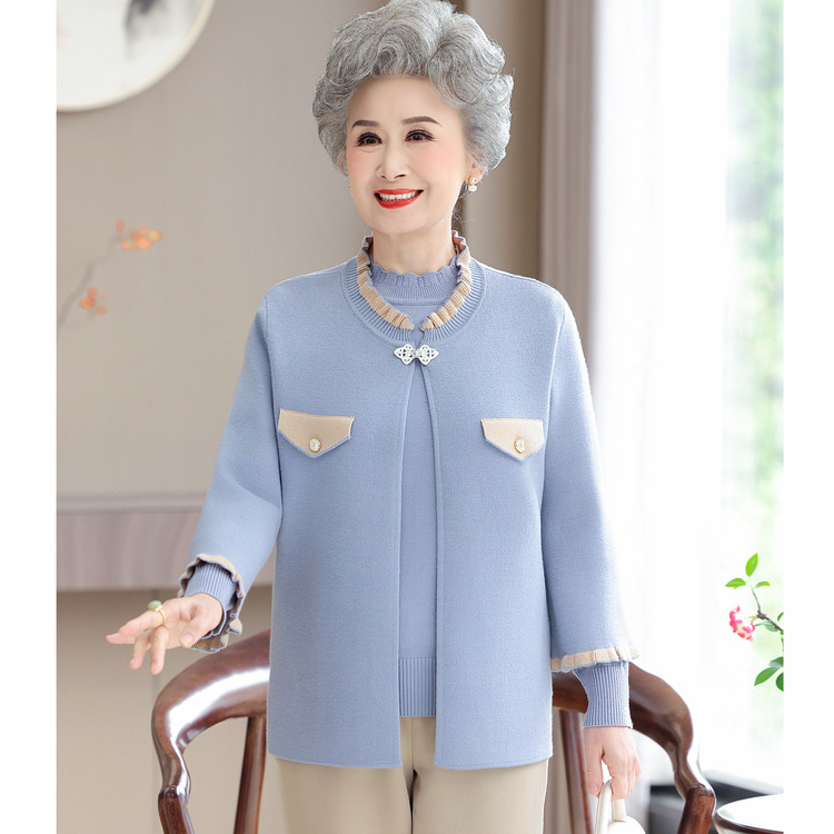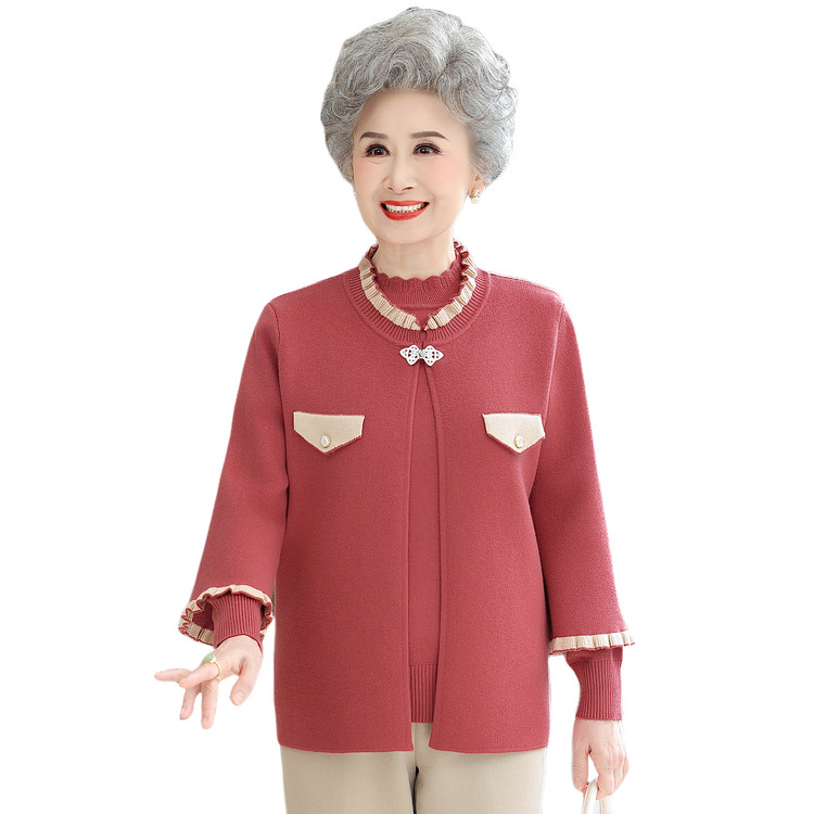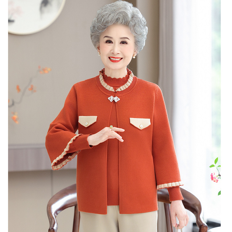 中老年女装毛衫50岁外套2025新款妈妈春装中式衣服红色针织两件套