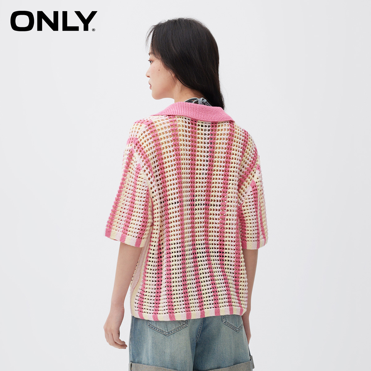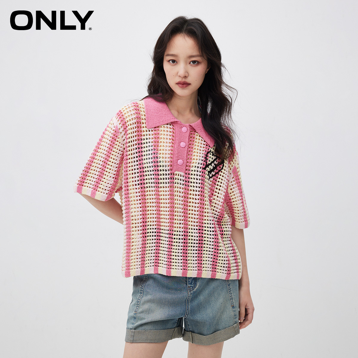 ONLY秋季百搭宽松显瘦POLO领拼色短袖针织衫女|124224004