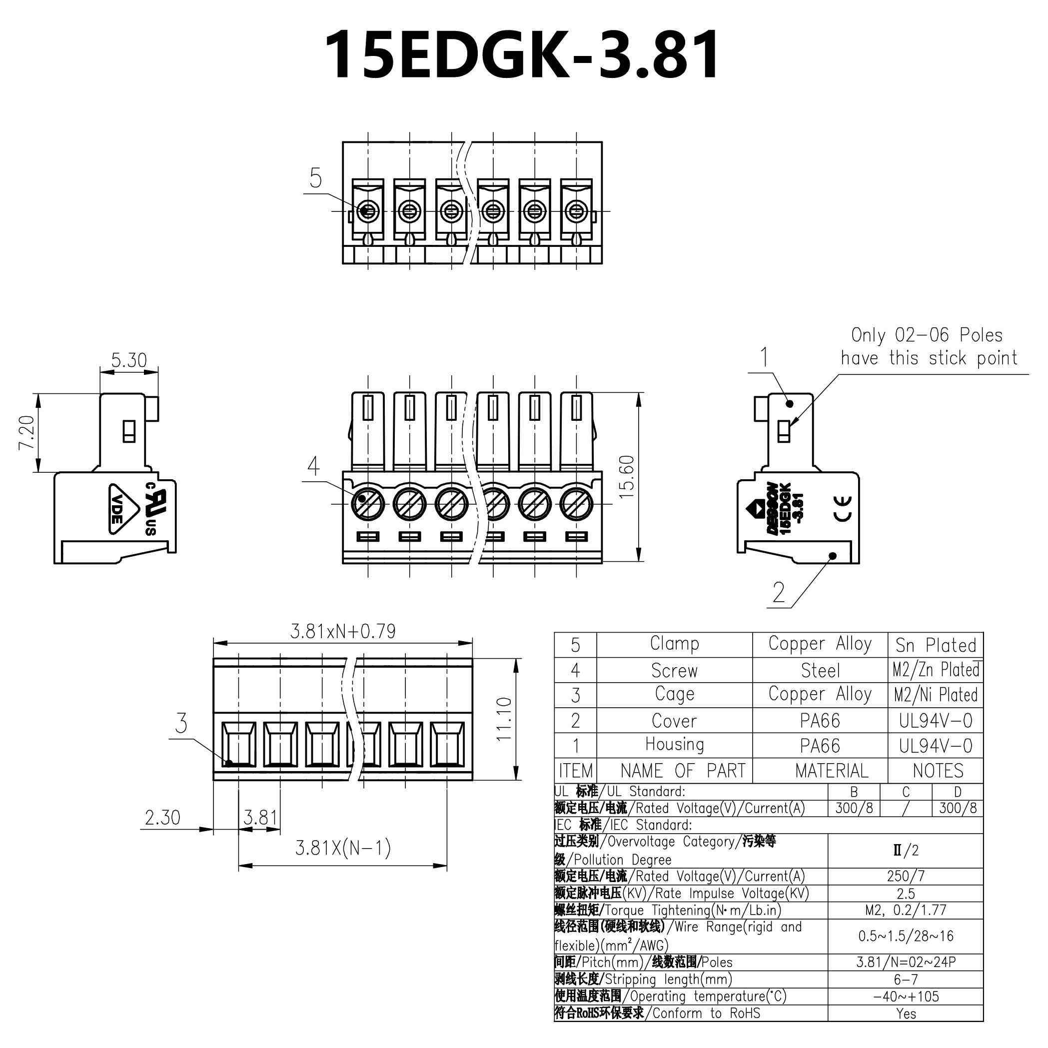 DEGSON高正高松15EDGK-3.81mm插拔式PCB接线端子KF2EDGK凤凰MC1,5