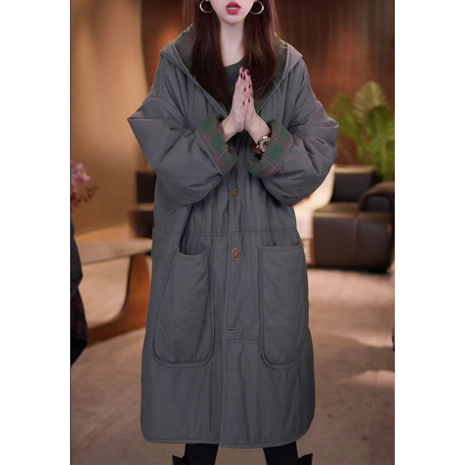 2025秋冬新款韩版时尚加厚中长款棉衣宽松显瘦双面穿连帽棉服外套