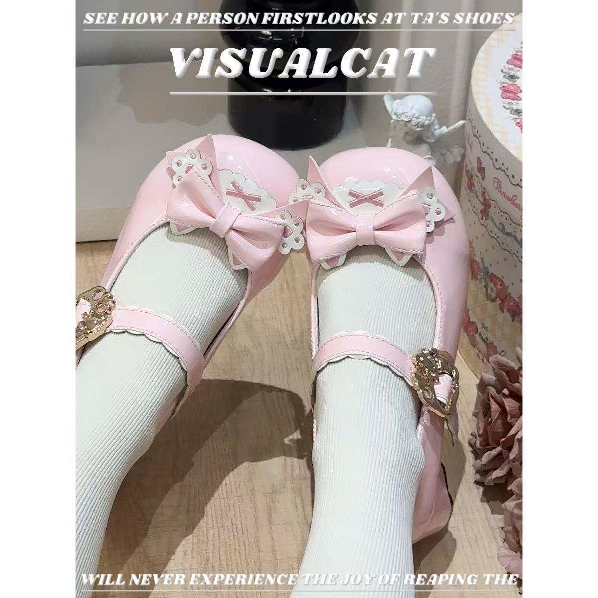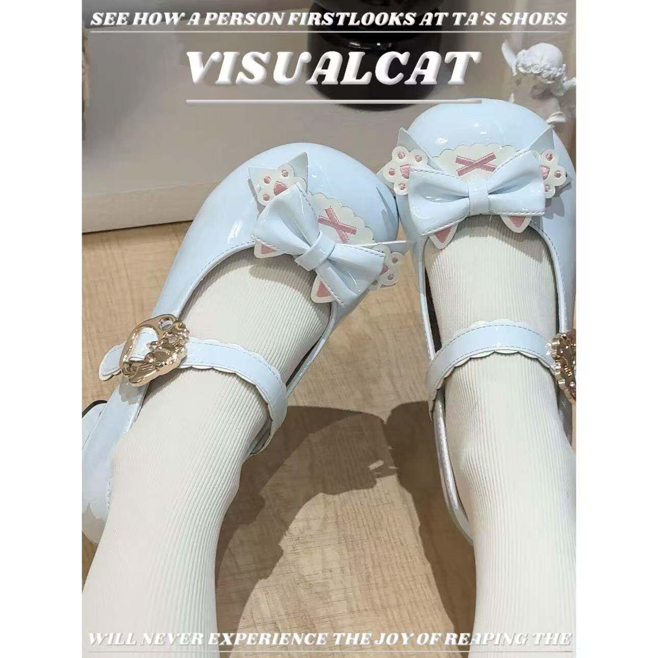 VISUALCAT 原创Lolita高跟鞋茶会千金优雅圆头中跟洛丽塔小皮鞋
