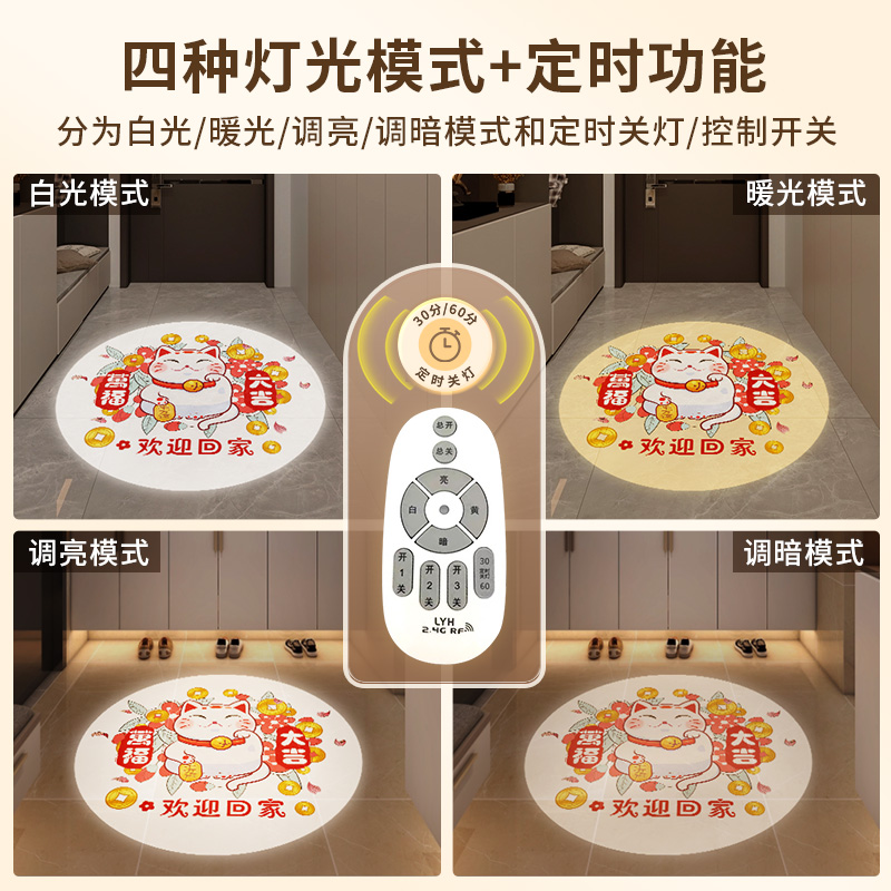 入户玄关投影灯定制创意图案过道走廊灯感应筒灯家用走道灯射灯
