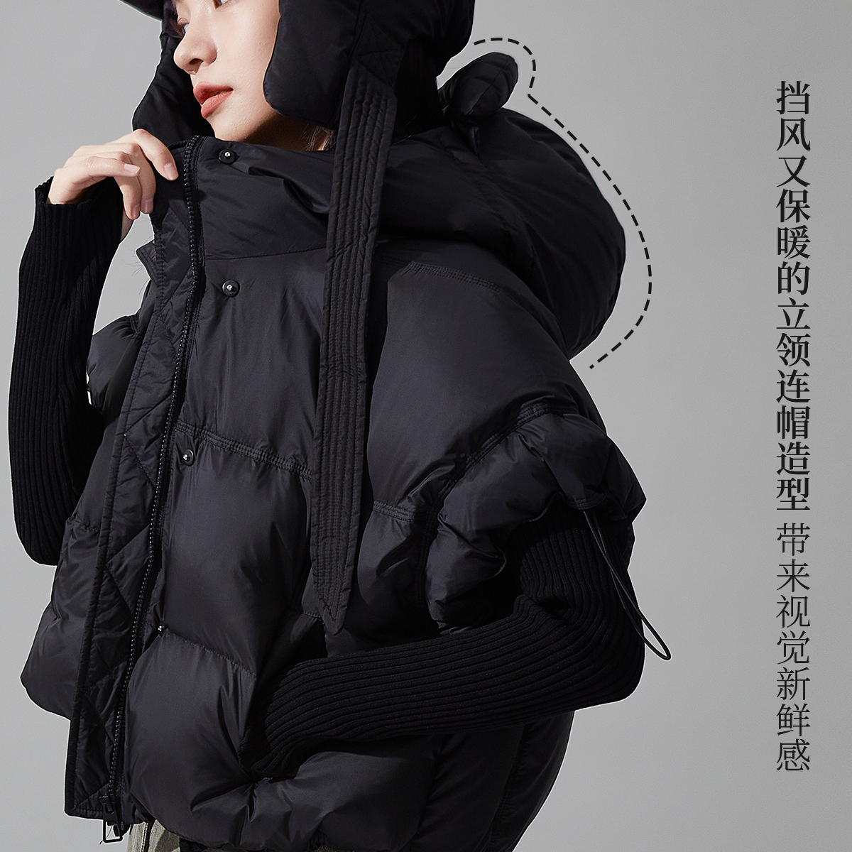 秸熙连帽短款泡芙羽绒服