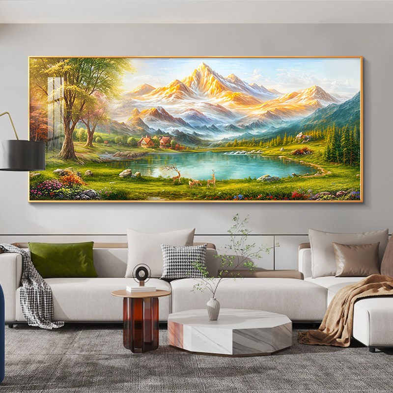 聚宝盆客厅装饰画横幅山水画风景油画沙发背景墙挂画日照金山壁画