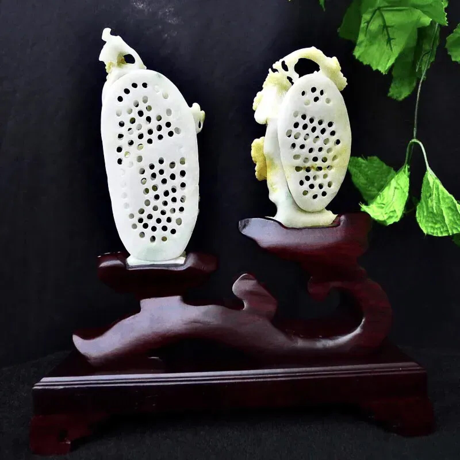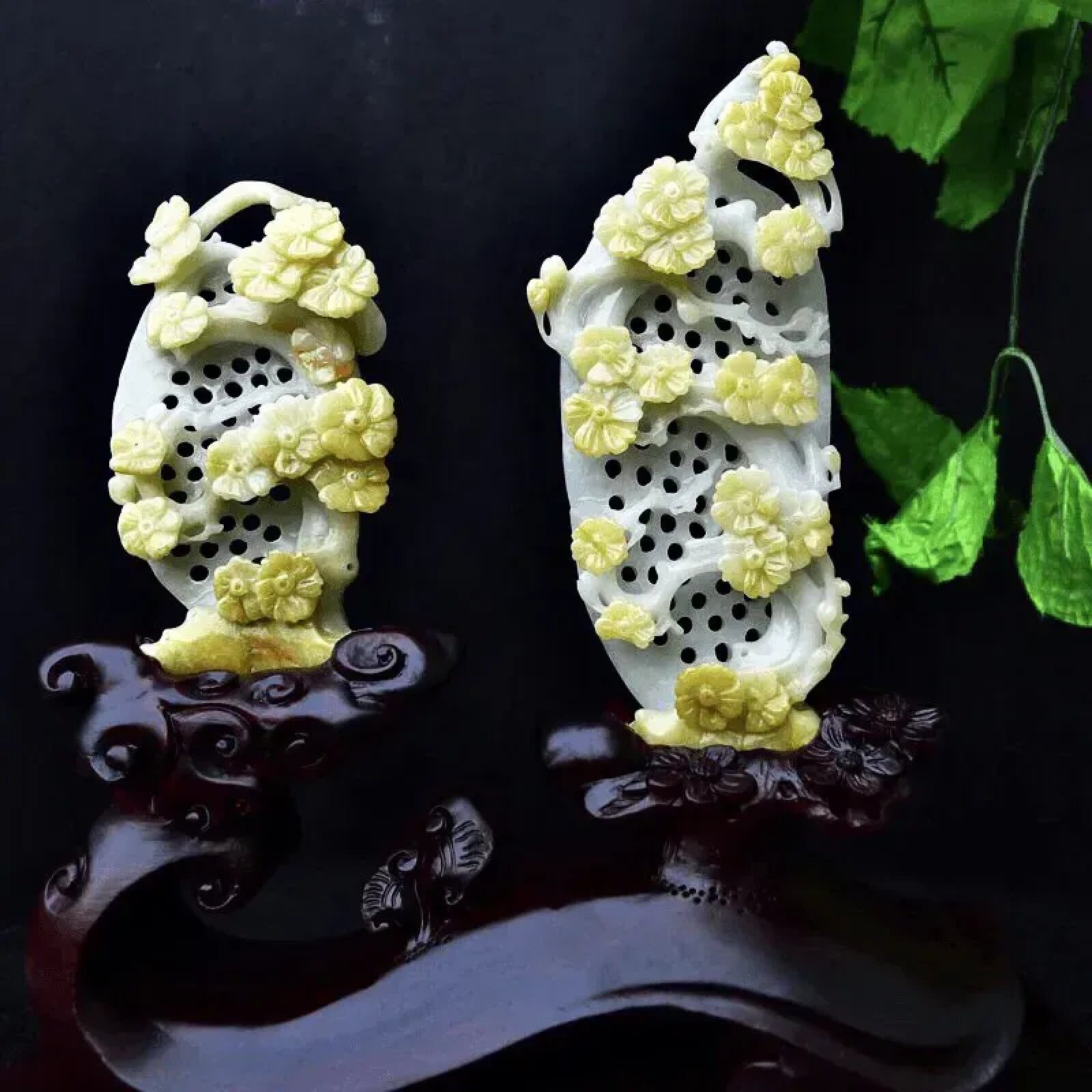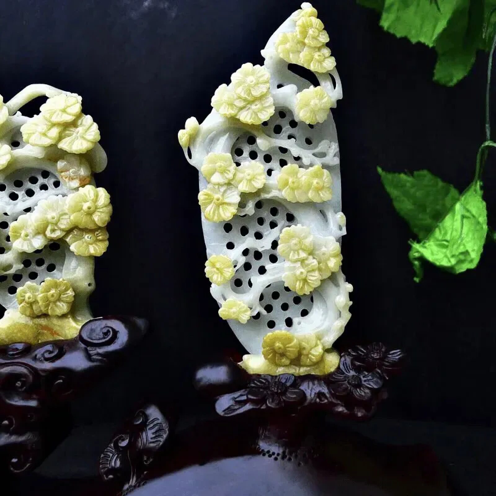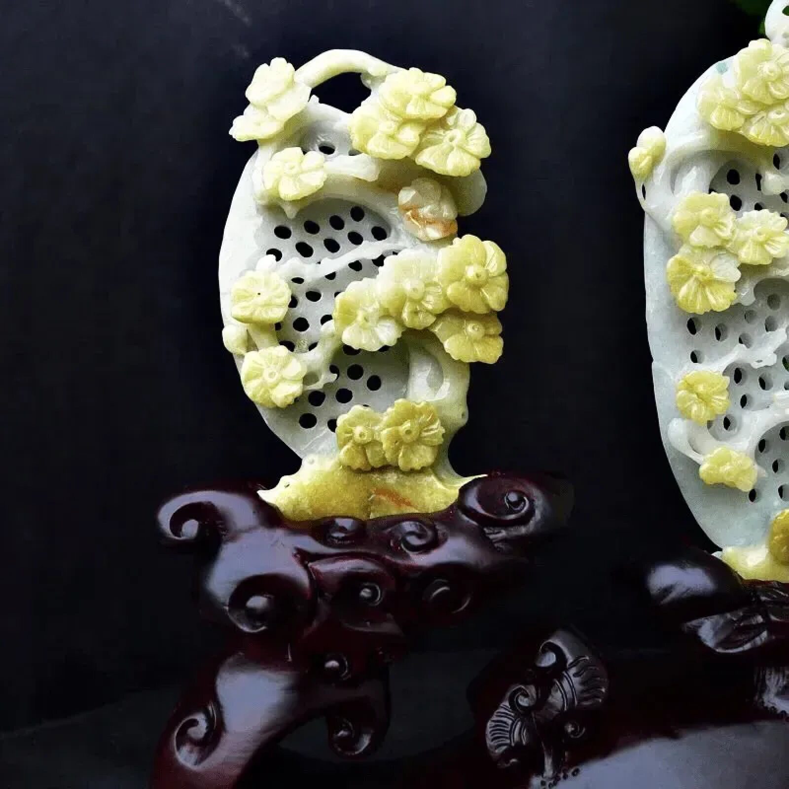 缅甸翡翠缕空精雕梅花小精品摆件黄翡招财进宝喜庆橱柜摆饰0.26kg