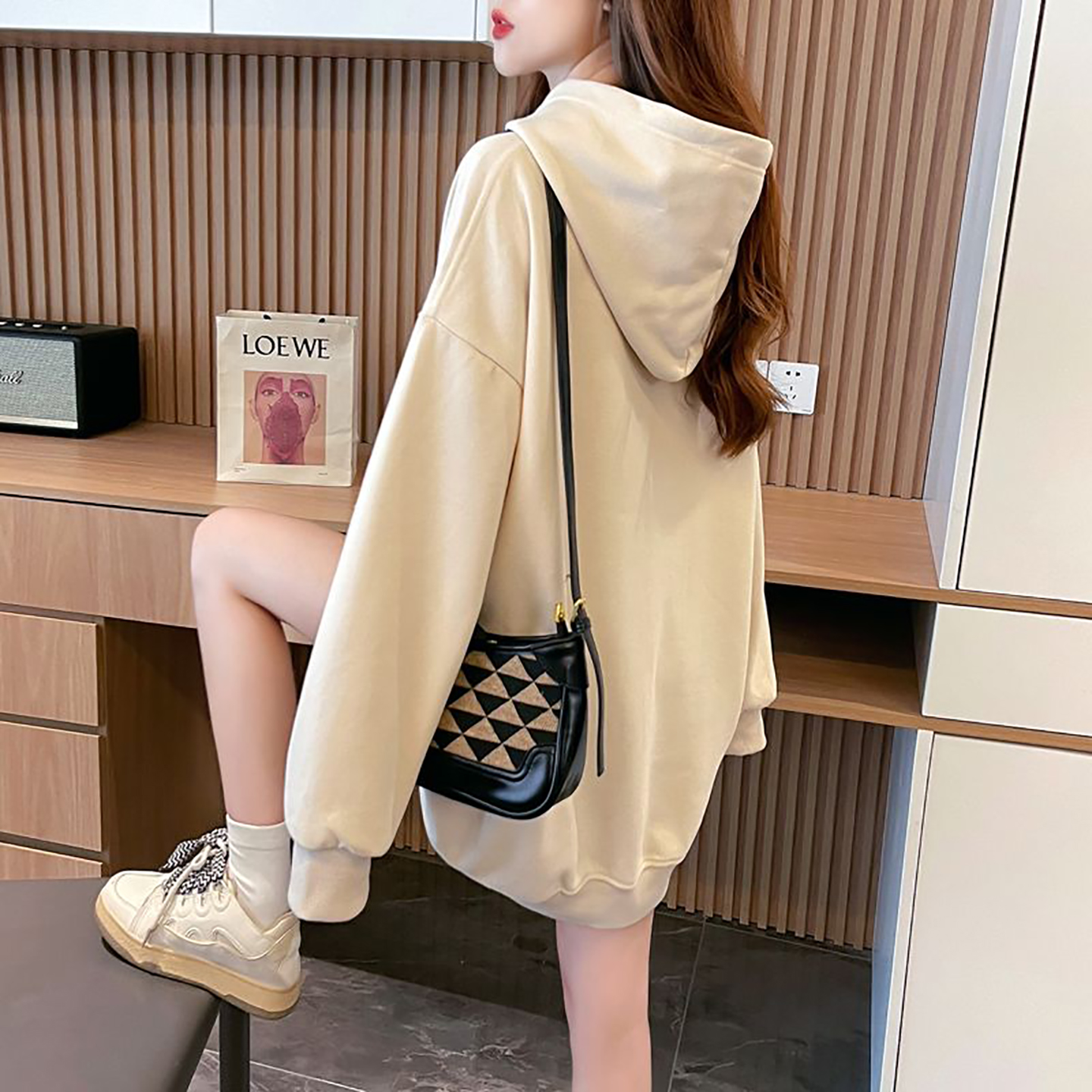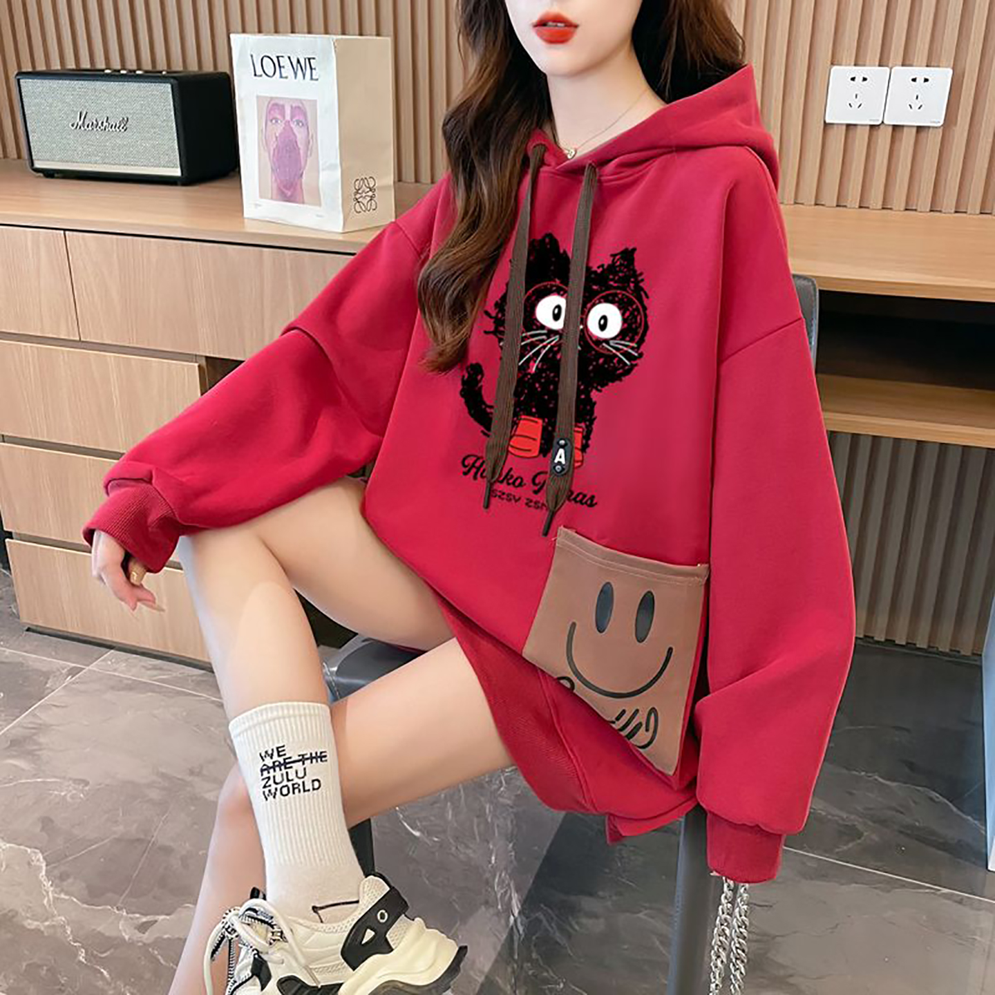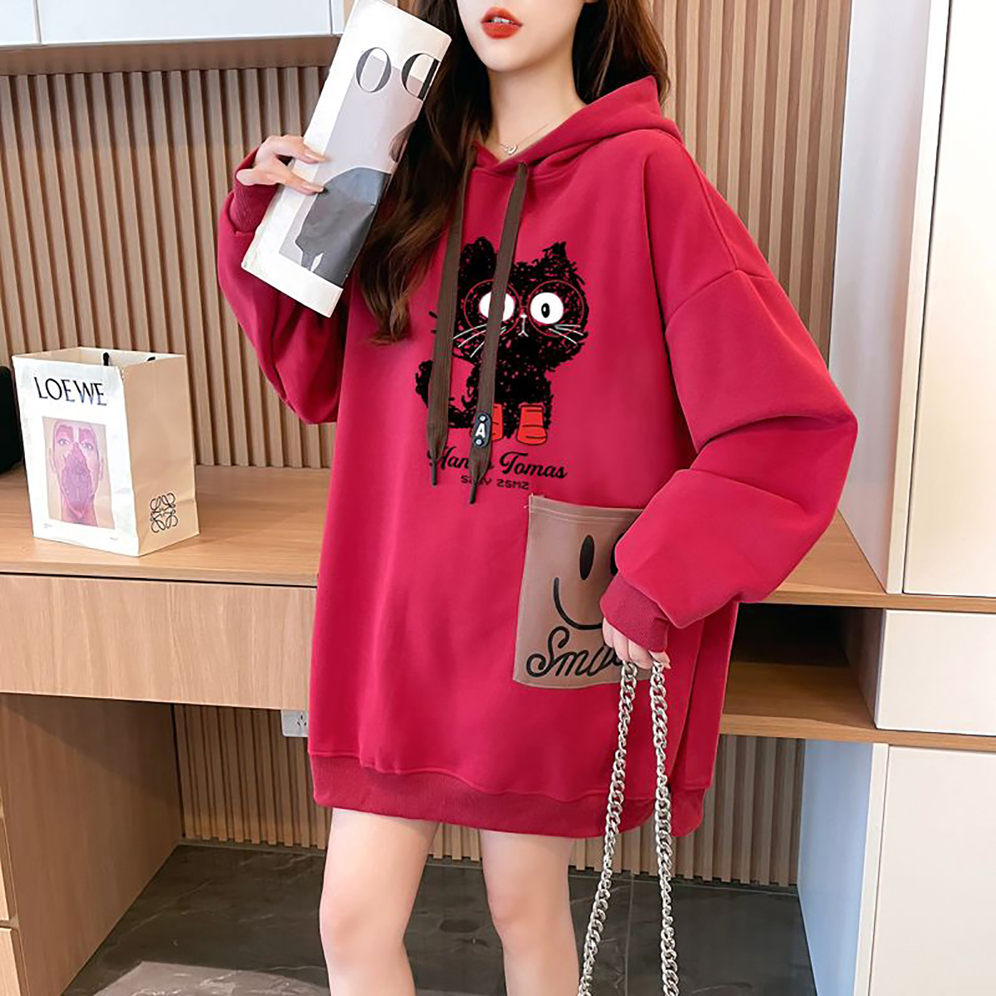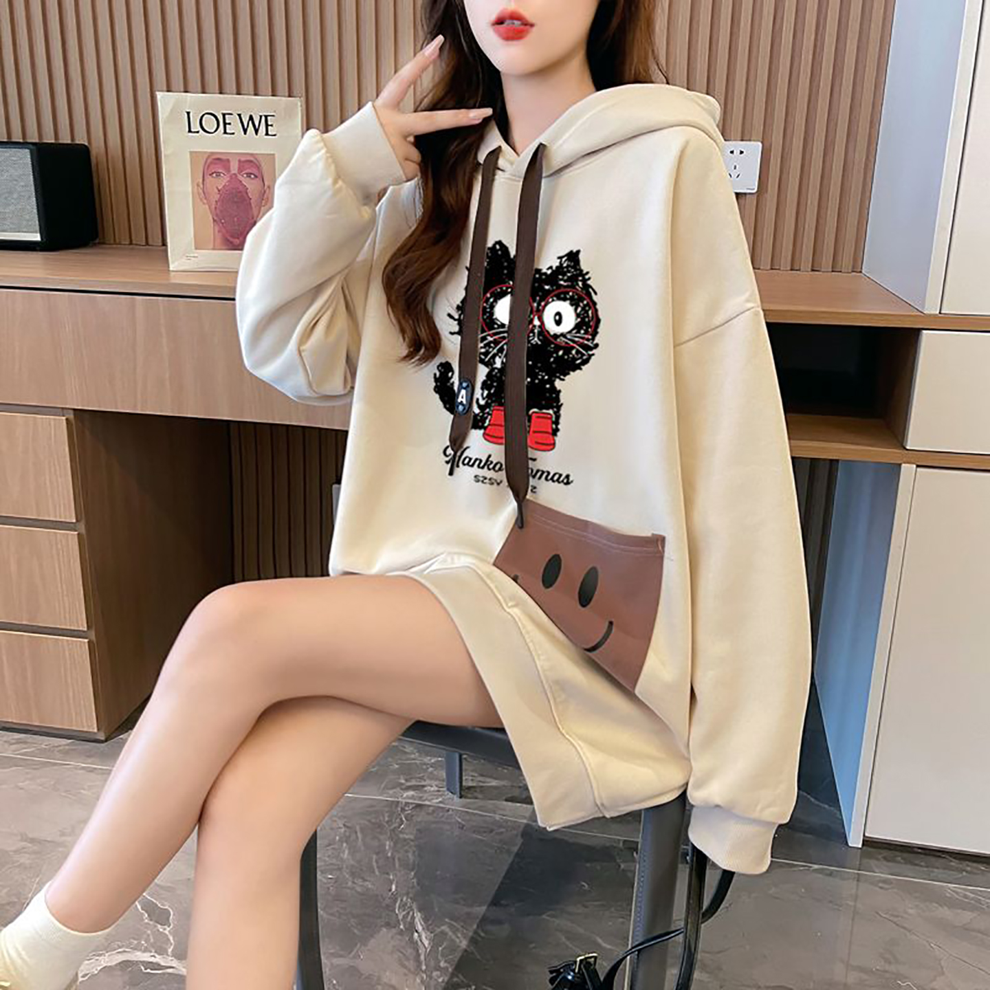 胖MM巨好看卡通连帽卫衣女中长款