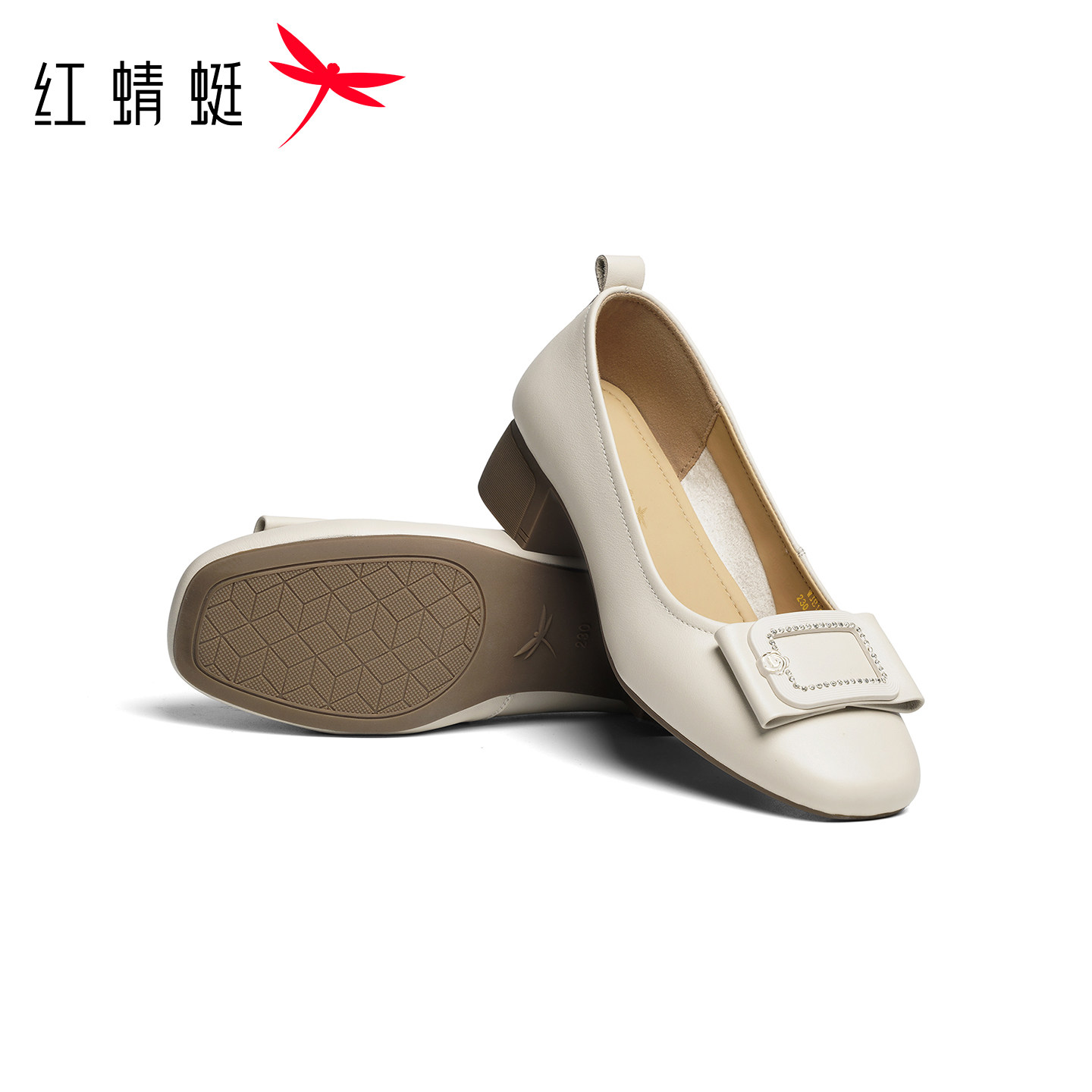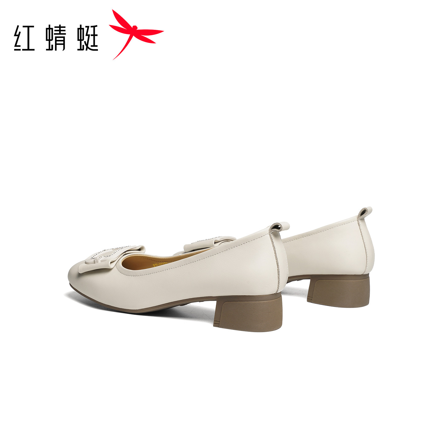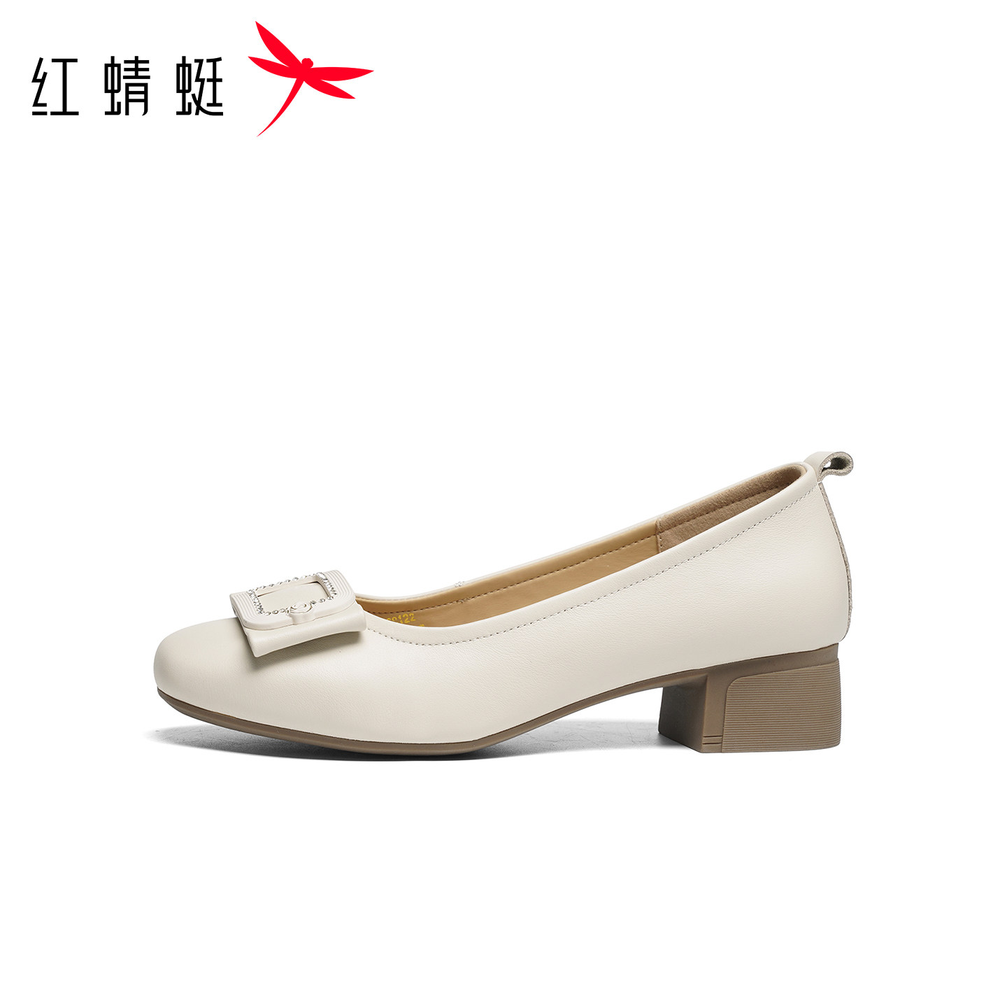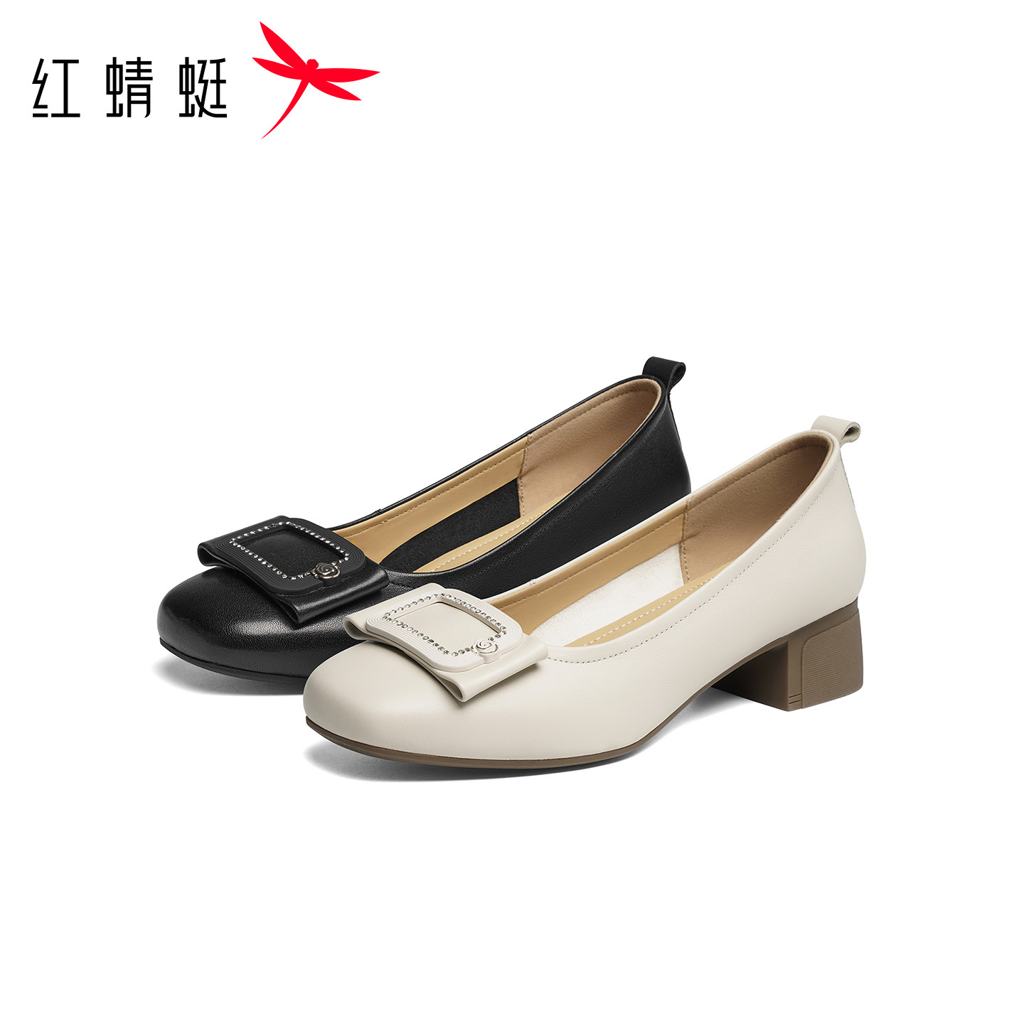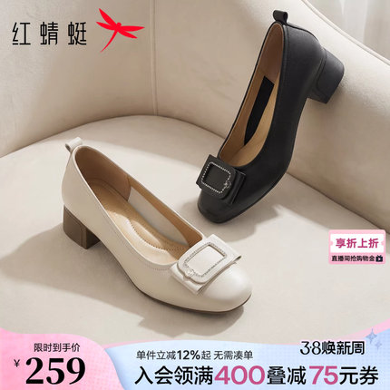 红蜻蜓单鞋女2026春季新款女鞋真皮粗跟皮鞋舒适通勤妈妈高跟鞋子