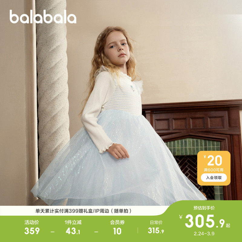 【商场同款】巴拉巴拉童装儿童连衣裙2026秋冬装女童网纱公主裙子