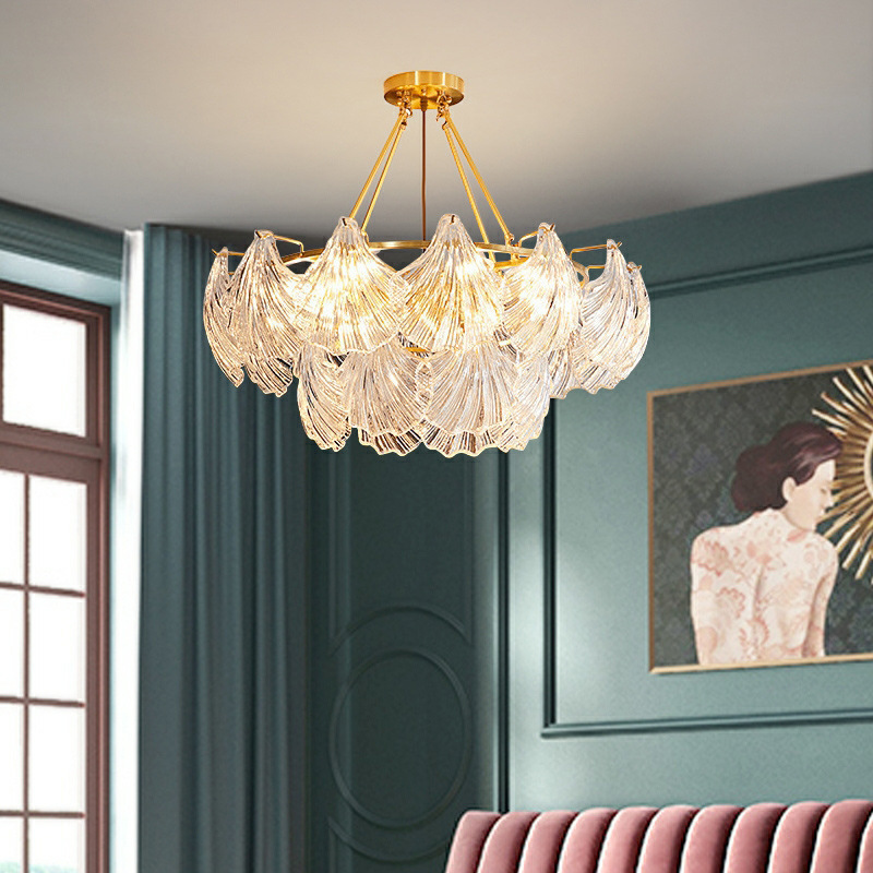 法式贝壳水晶吊灯美式宫廷金色客厅吊灯卧室灯简约玻璃护眼餐厅灯