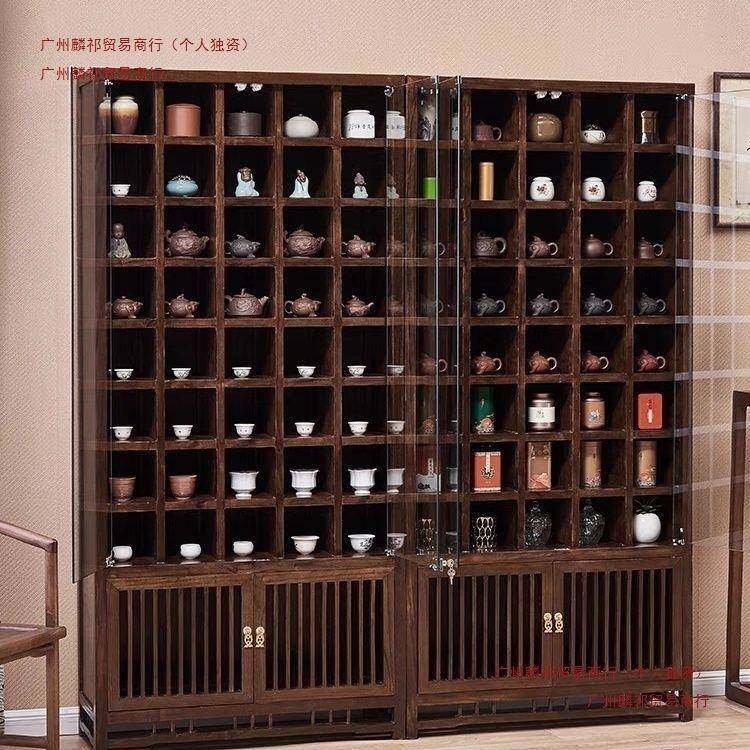 实木格子架紫砂壶玻璃展示架茶杯茶壶多宝阁新中式柜南榆木博古架