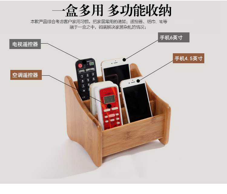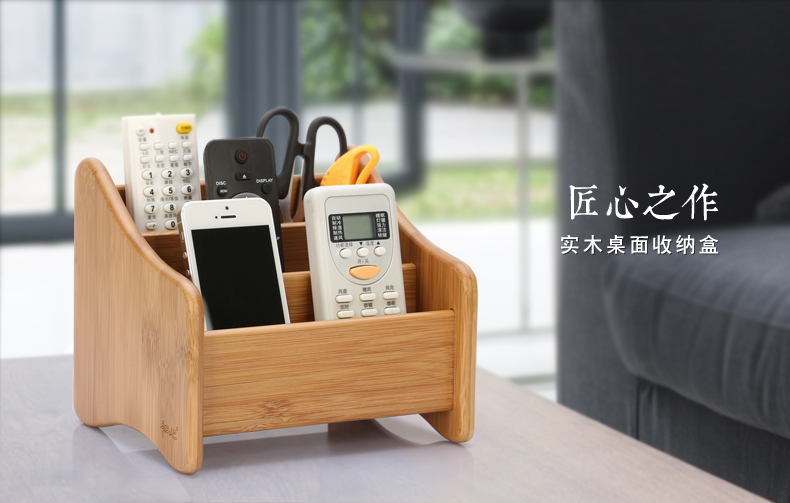 包邮楠竹遥控器收纳盒创意木质办公桌面整理储物箱客厅茶几收纳架