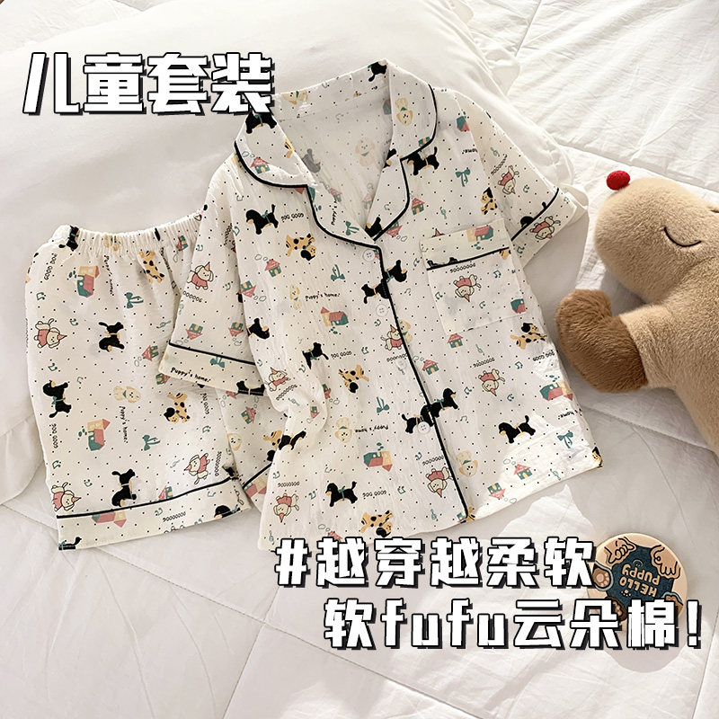 男童宝宝夏季款睡衣云朵棉中大童开衫短袖短裤家居服洋气卡通套装