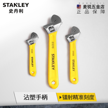 史丹利B系列沾塑柄活动扳手开口活络小扳手4寸6/8寸10寸12寸15寸