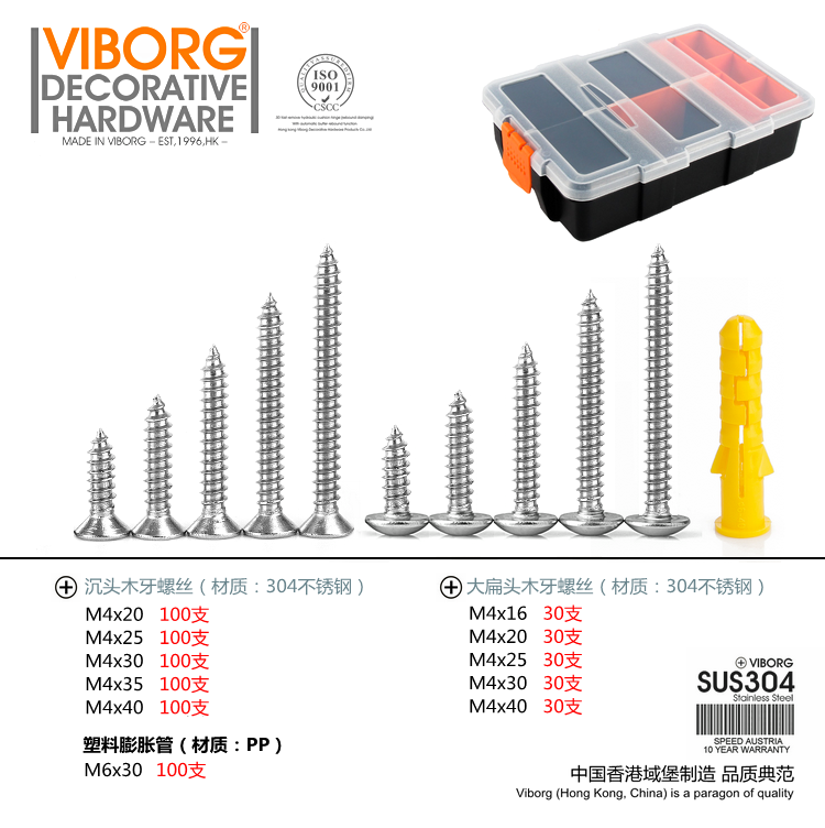v域堡 家庭维修盒304不锈钢螺丝工具盒自攻木牙螺丝盒套装