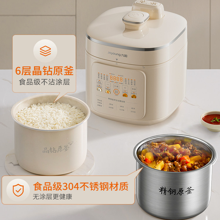 九阳电压力锅家用5L大容量0涂层不锈钢多功能高压电饭煲2025新款