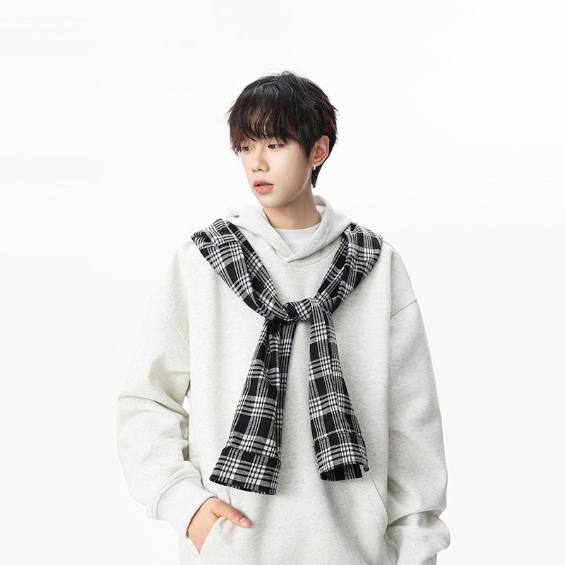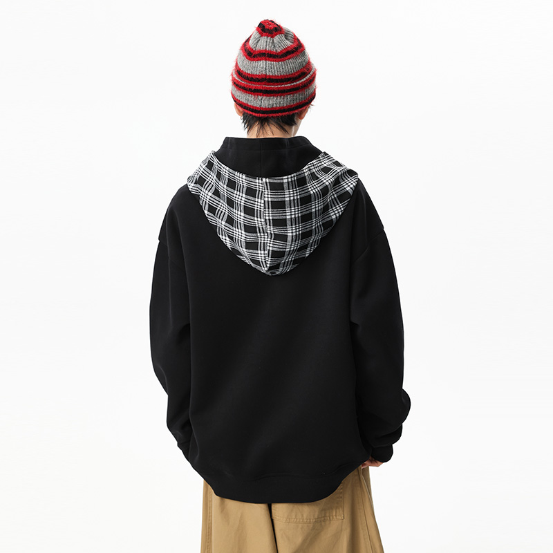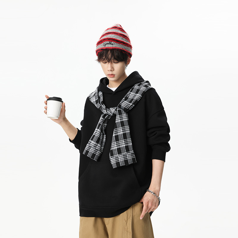 假两件披肩连帽卫衣男款秋季美式结构分割套头氛围感宽松外套以純