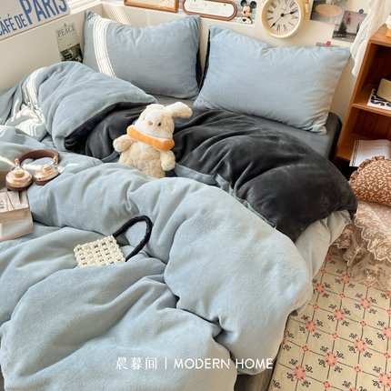 纯色牛奶绒冬季加厚床上四件套法兰绒床单被套罩珊瑚绒宿舍三件套