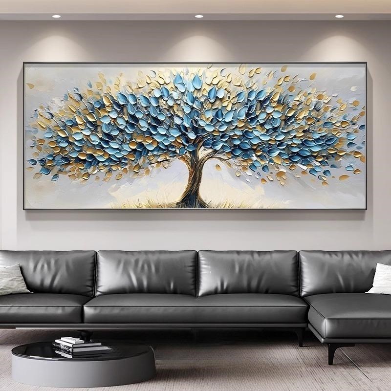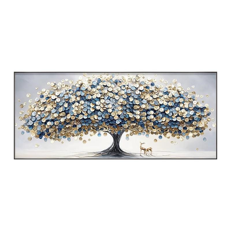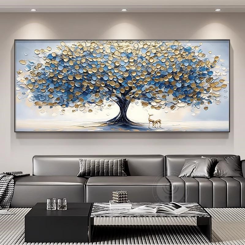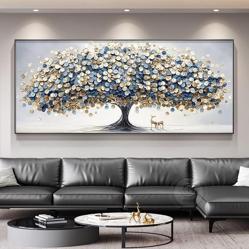 轻奢现代发财树h客厅装饰画简约大气沙发背景墙挂画寓意好横幅壁