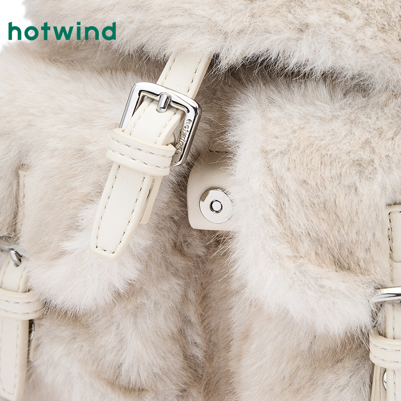 热风女士毛绒双肩包2025年冬季新款大容量小香风手提双肩背包