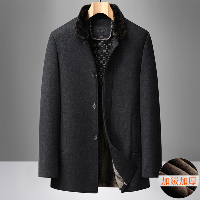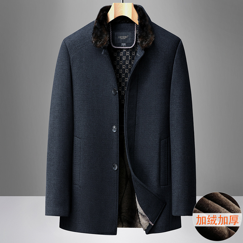 送父亲立领毛呢大衣年季新款男装中老年商务休闲加绒加厚外套