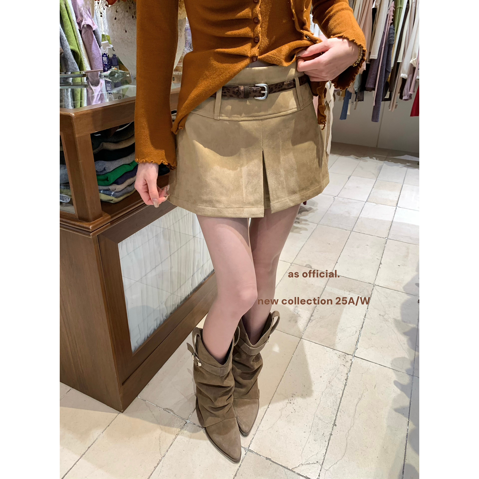 AS OFFICIAL十三行秋季复古麂皮开衩A字裤裙半身裙女配腰带25306