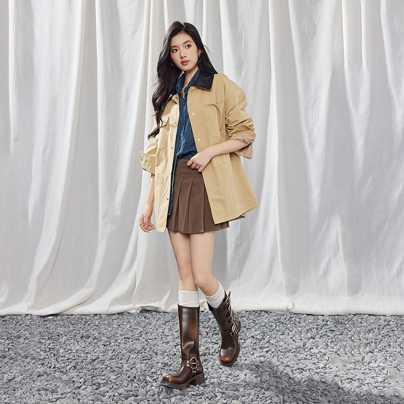 A21女装春季巴恩风PU皮翻领夹克