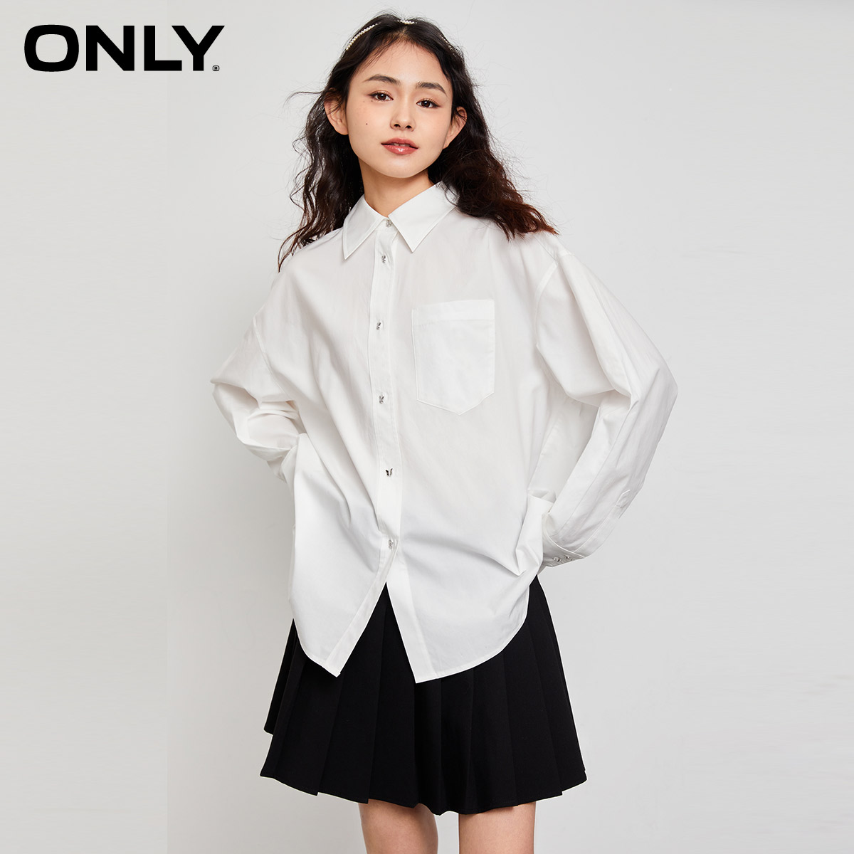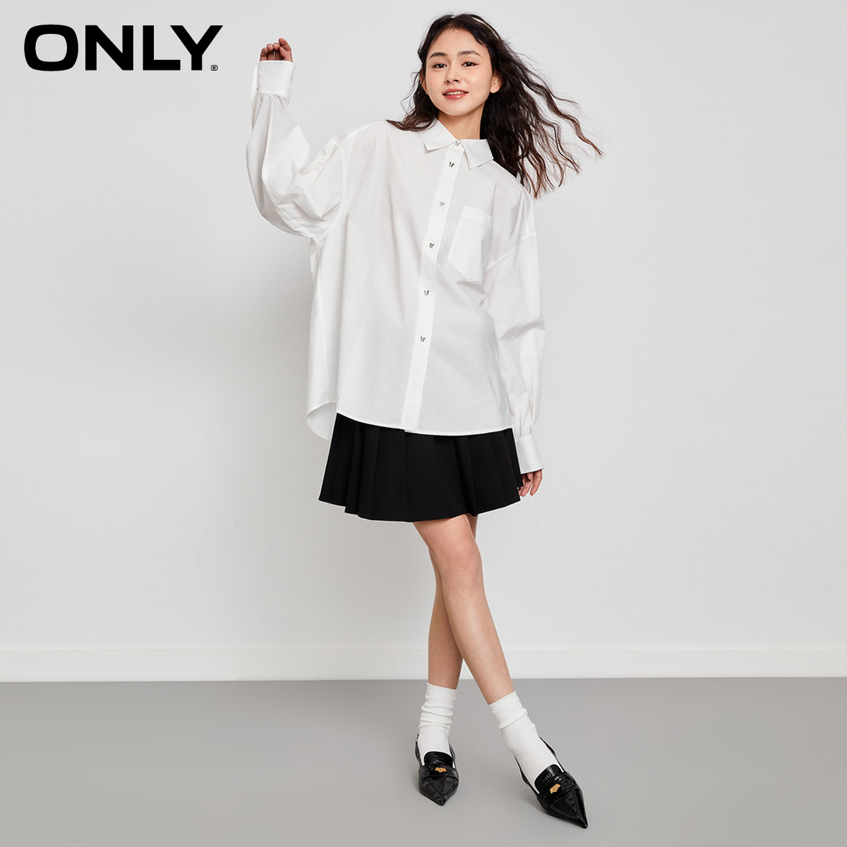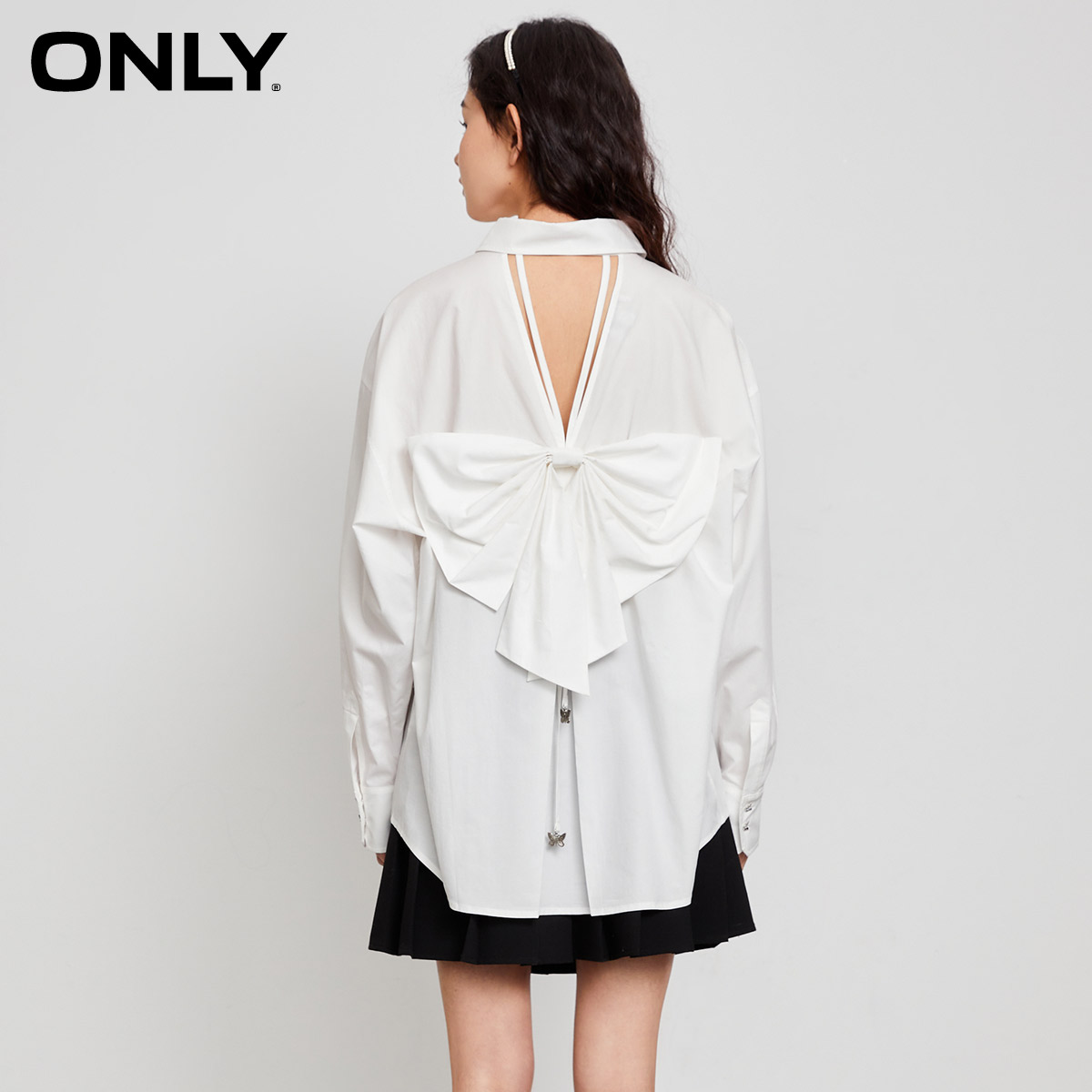 【ONLY奥莱】秋季休闲通勤风立体蝴蝶结宽松长袖衬衫女