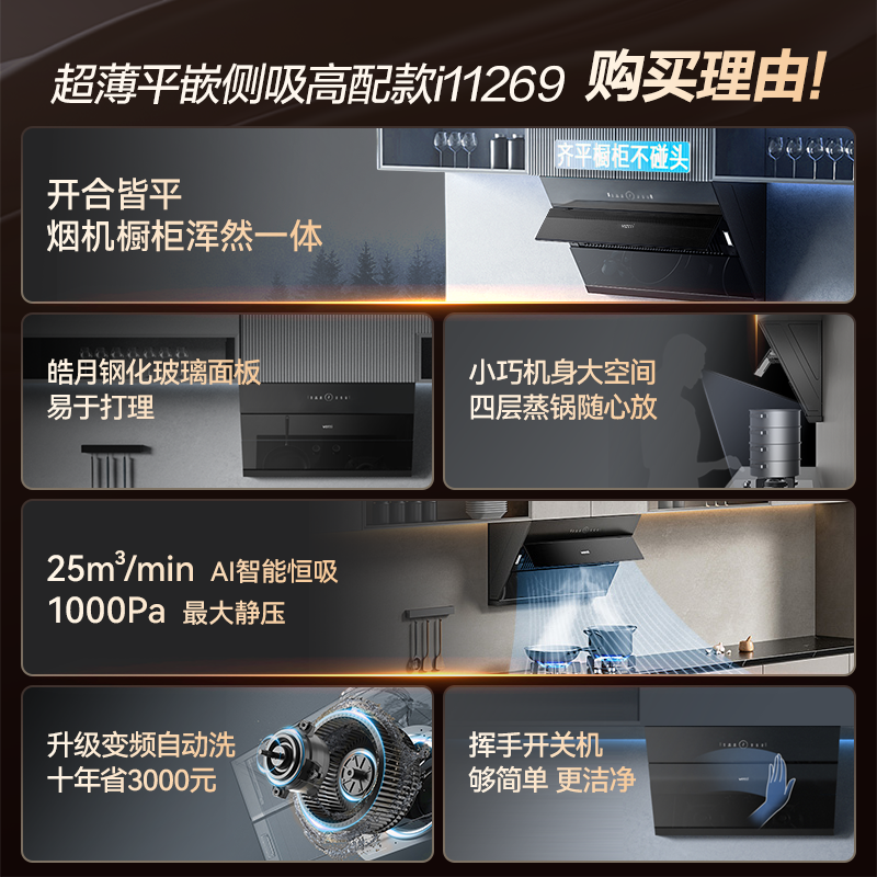 华帝抽油烟机家用变频大吸力油烟机i11269侧吸烟灶套装官方旗舰店