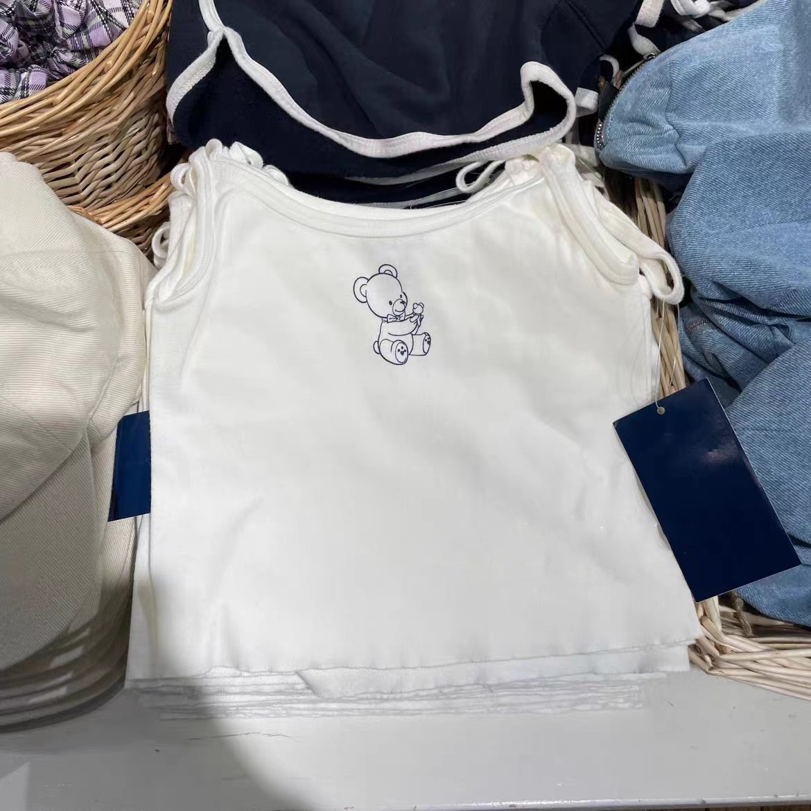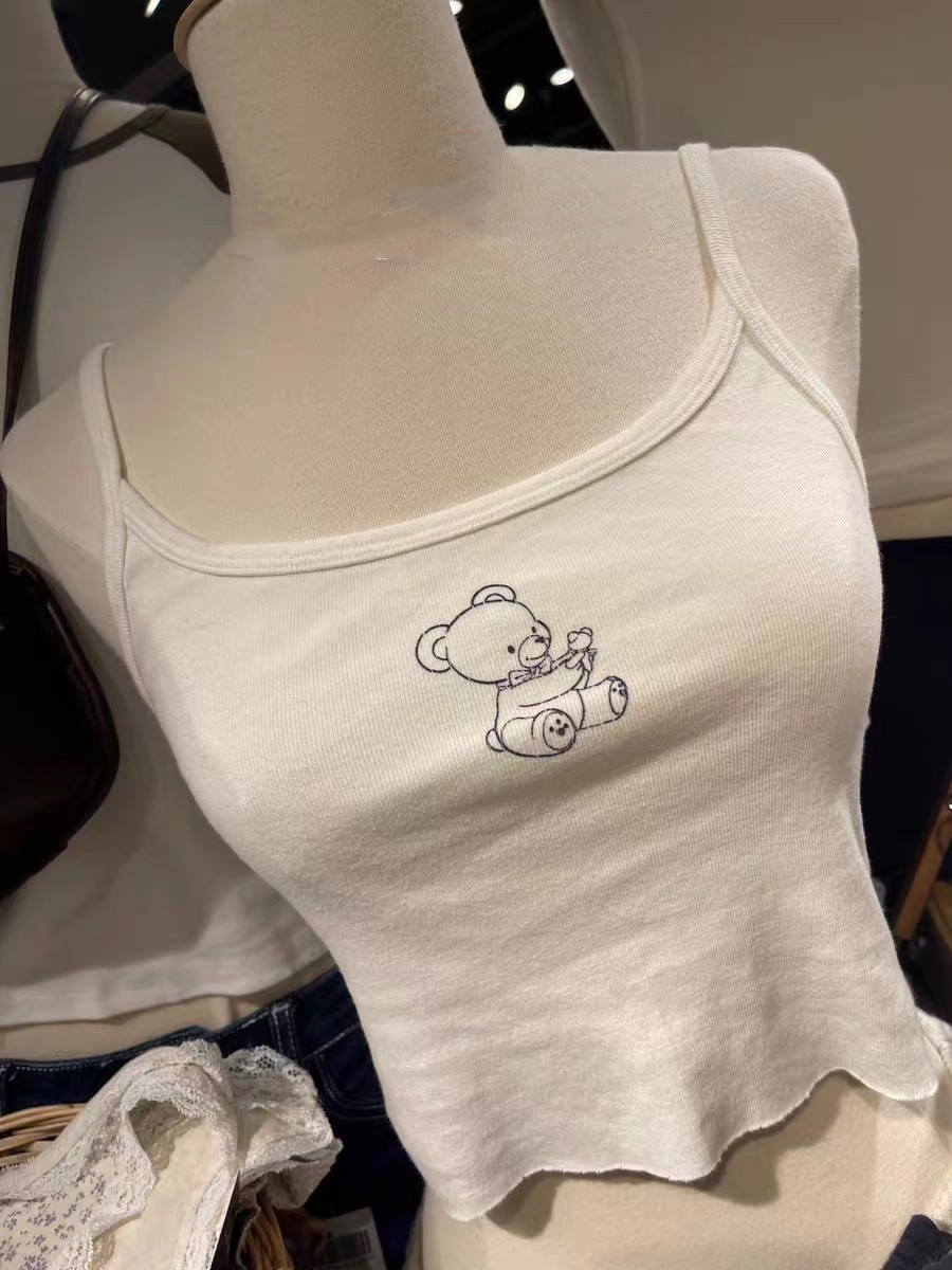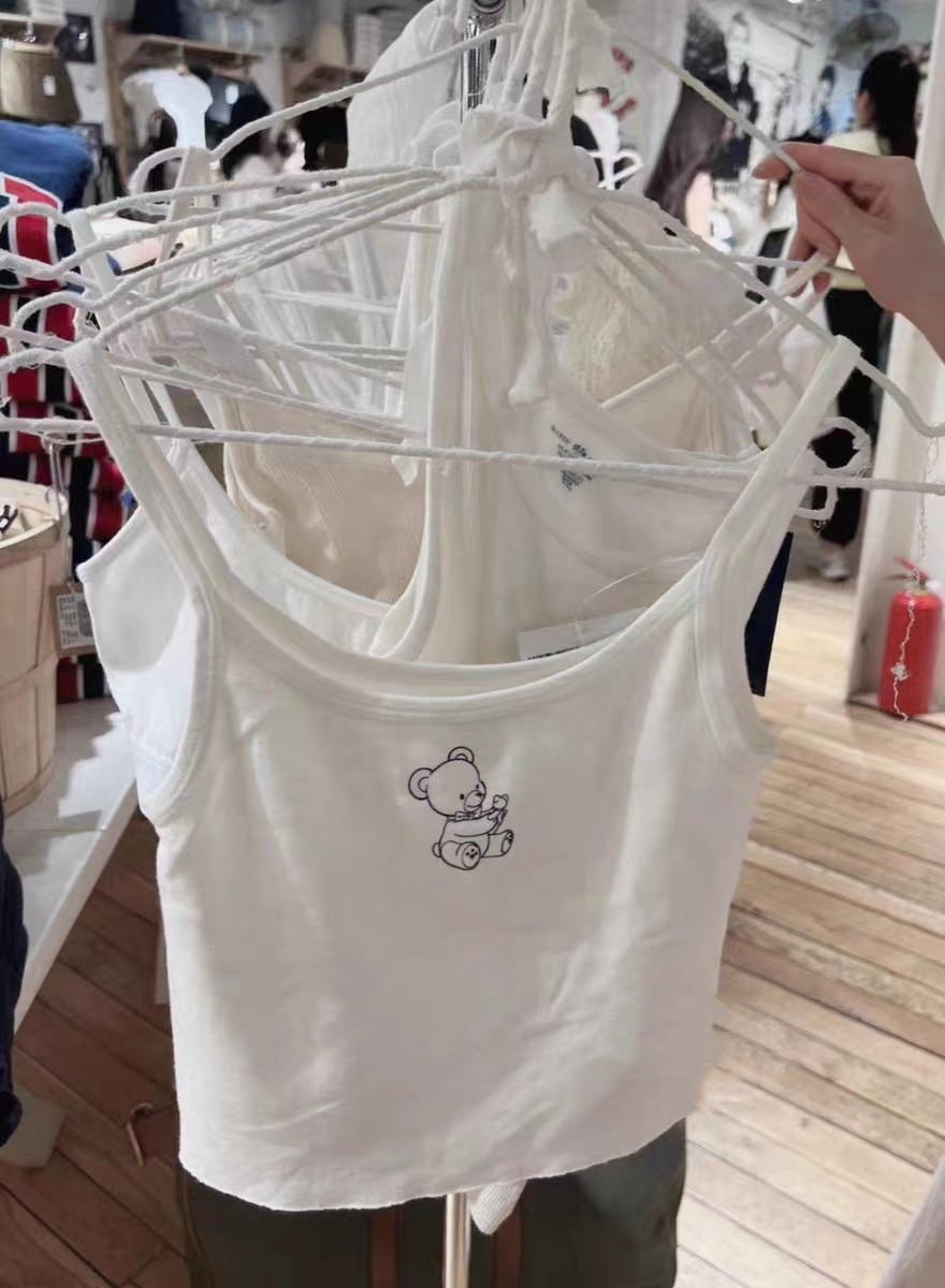 BM白色小熊印花吊带女官网夏季新款休闲百搭显瘦短款纯棉背心上衣
