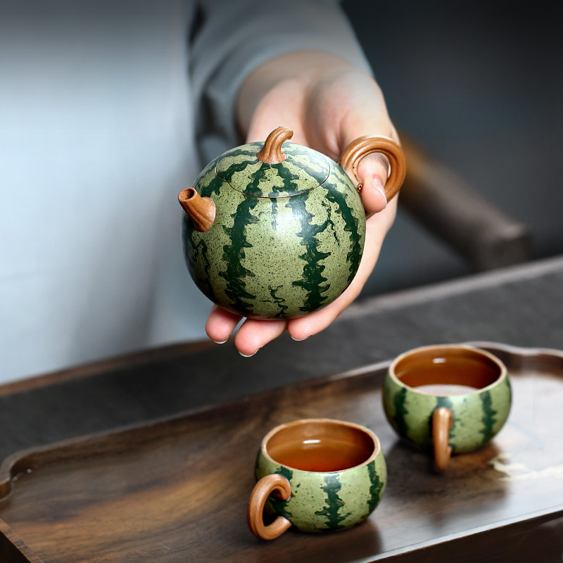 设计师手作观云原矿紫砂壶手工小茶壶刘雪琴段泥西瓜壶薄胎茶套装