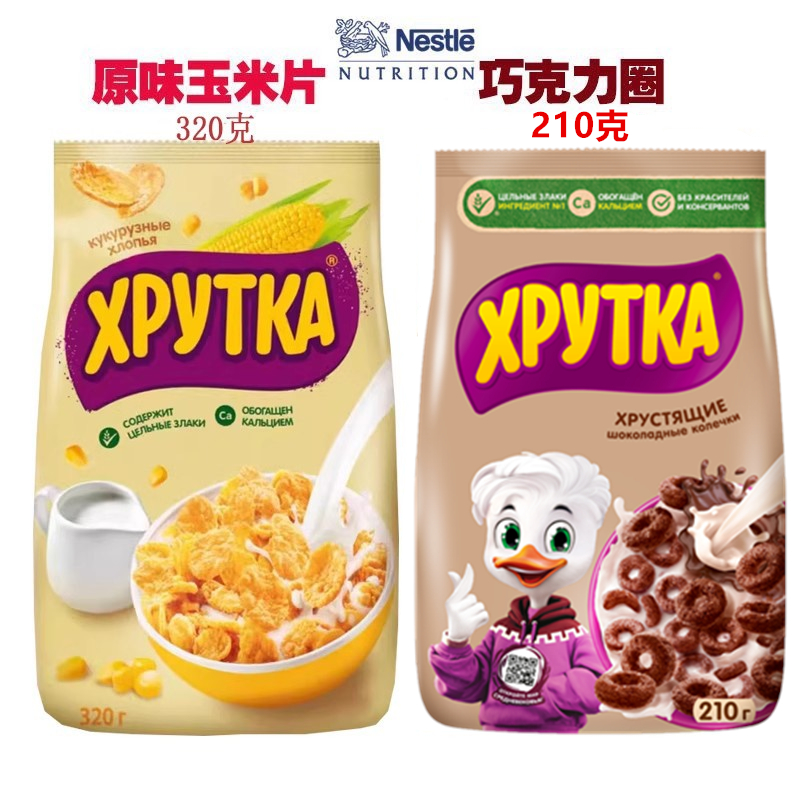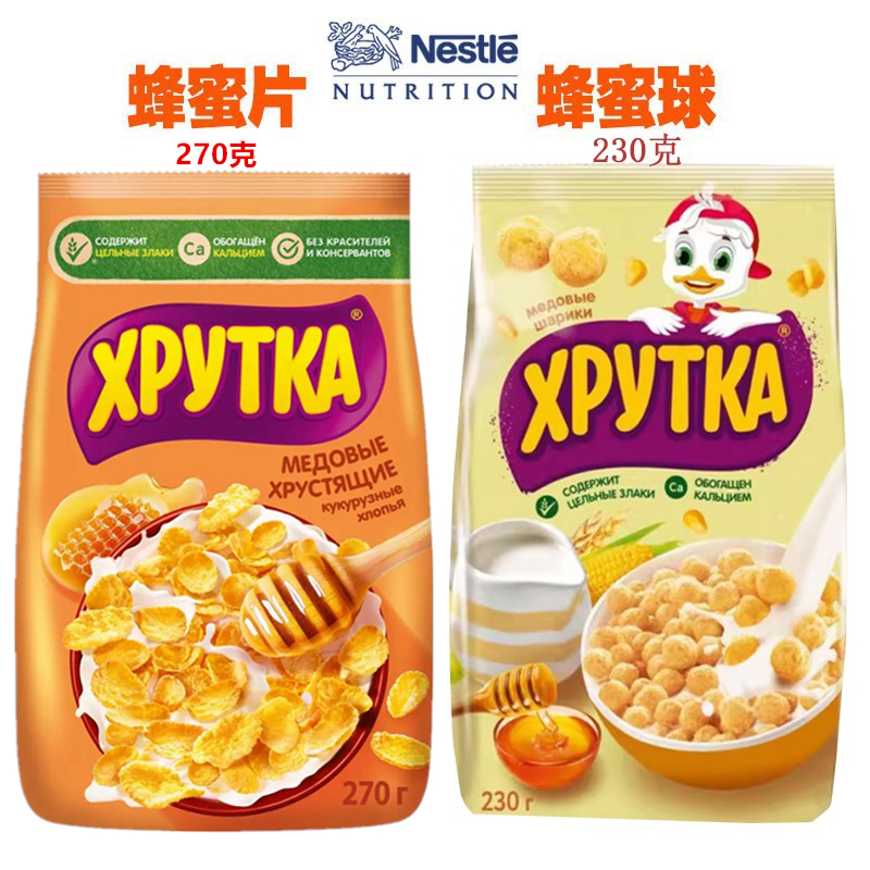 俄罗斯进口雀巢玉米片酥脆谷物即食儿童早代餐巧克力圈球蜂蜜燕麦