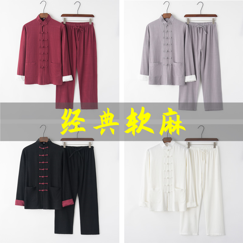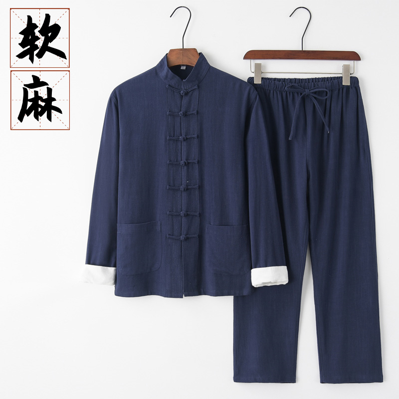 中国风亚麻男装中式复古唐装男立领盘扣汉服两件套汉服禅修居士服
