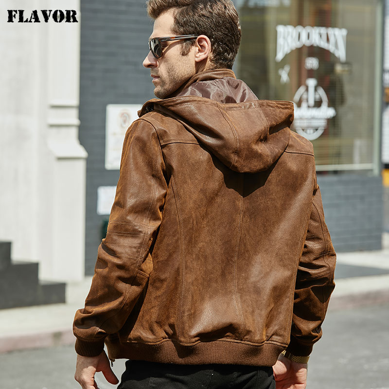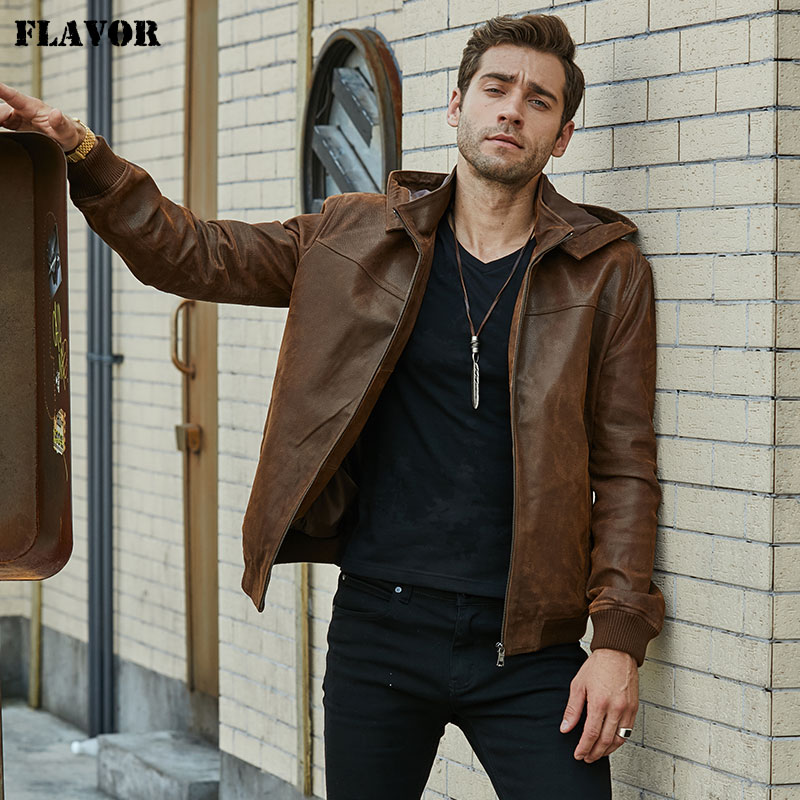春秋新款真皮皮衣男美式休闲猪皮皮夹克单装连帽短款男士皮衣外套