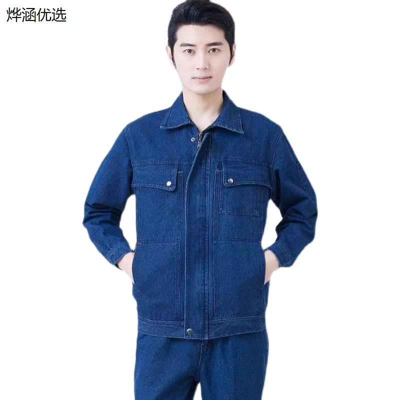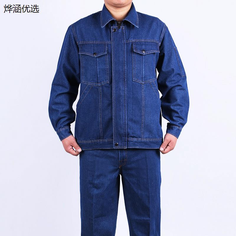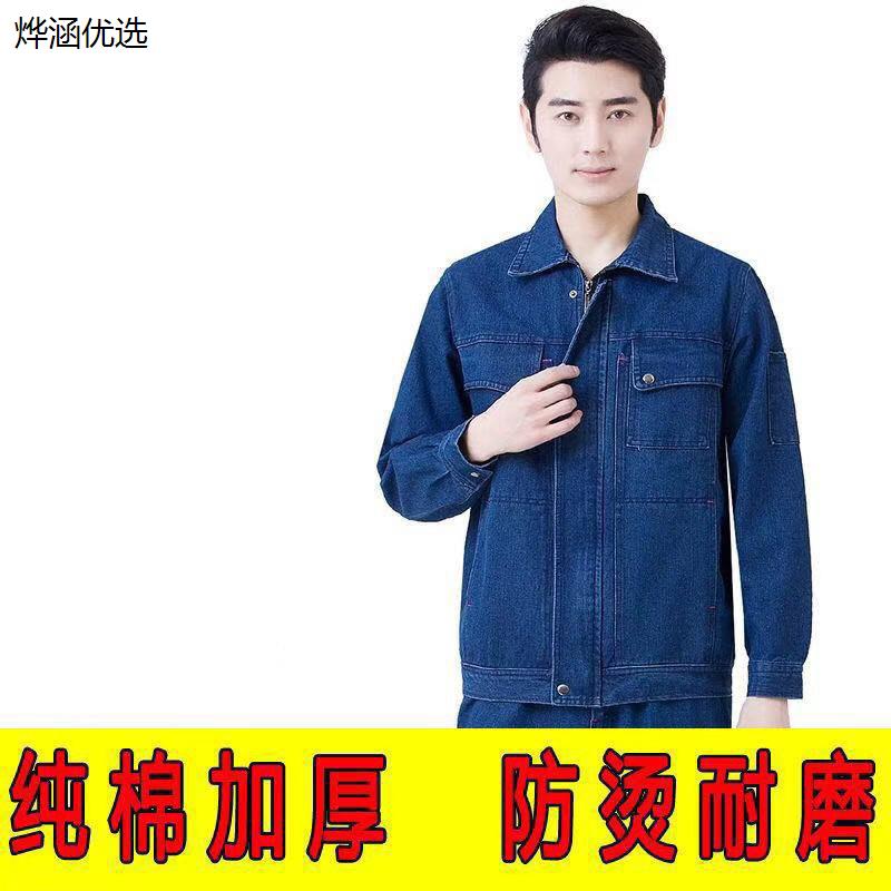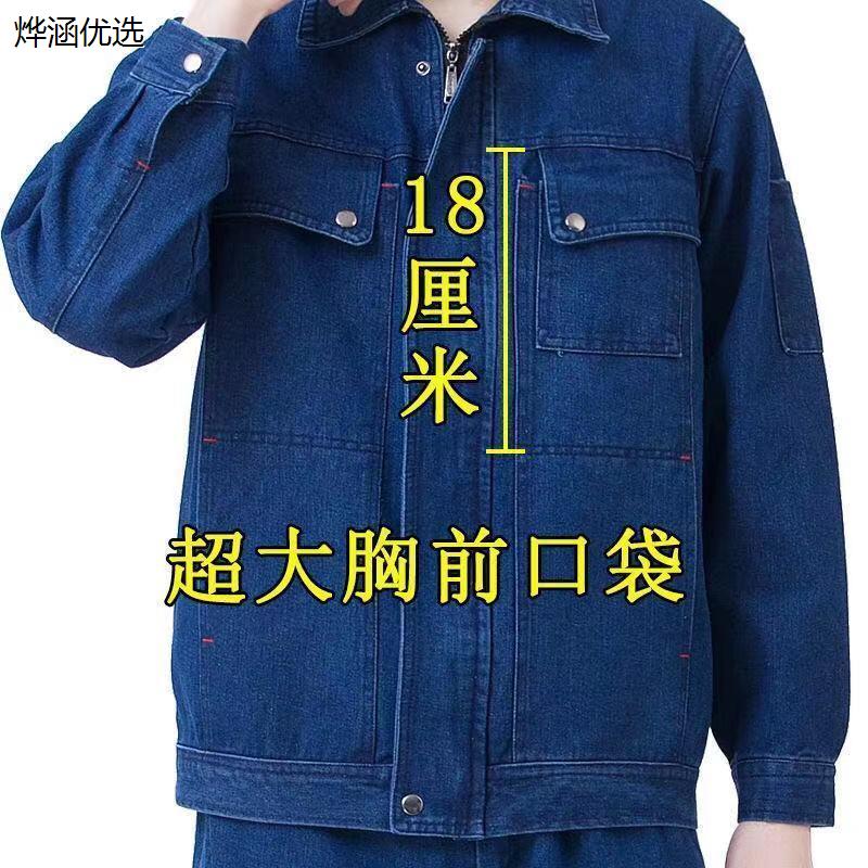 牛仔工作服套装男棉线厚款大口袋电焊工防烫耐磨车床劳保工作服男