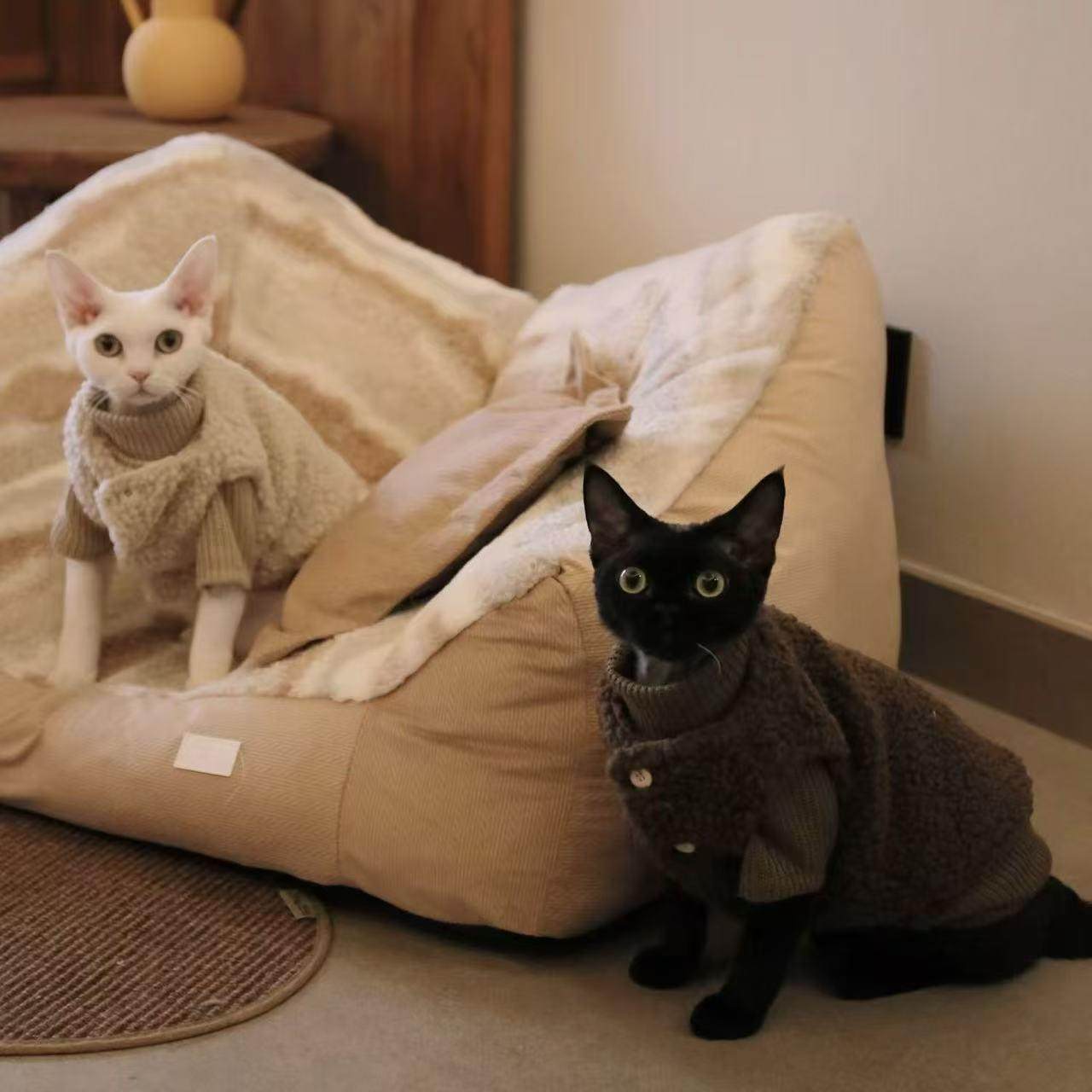 斯芬克斯猫衣服无毛猫德文暹罗蓝猫美短羊羔绒保暖系扣马甲毛衣套