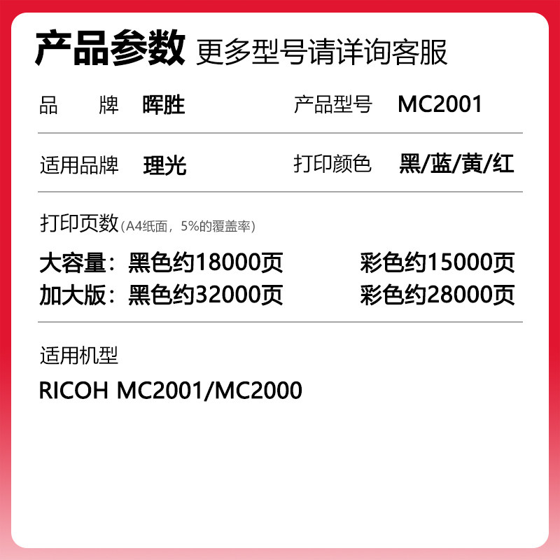 晖胜适用理光MC2000碳粉RicohMC2001粉盒MC2000墨盒MC2001EW MC2501复印机墨粉MC2000彩色打印机硒鼓原装品质