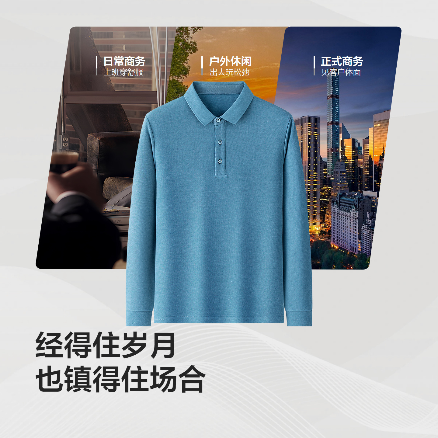 红豆桑蚕丝长袖POLO衫男25年秋季新款休闲弹力透气高端翻领T恤衫