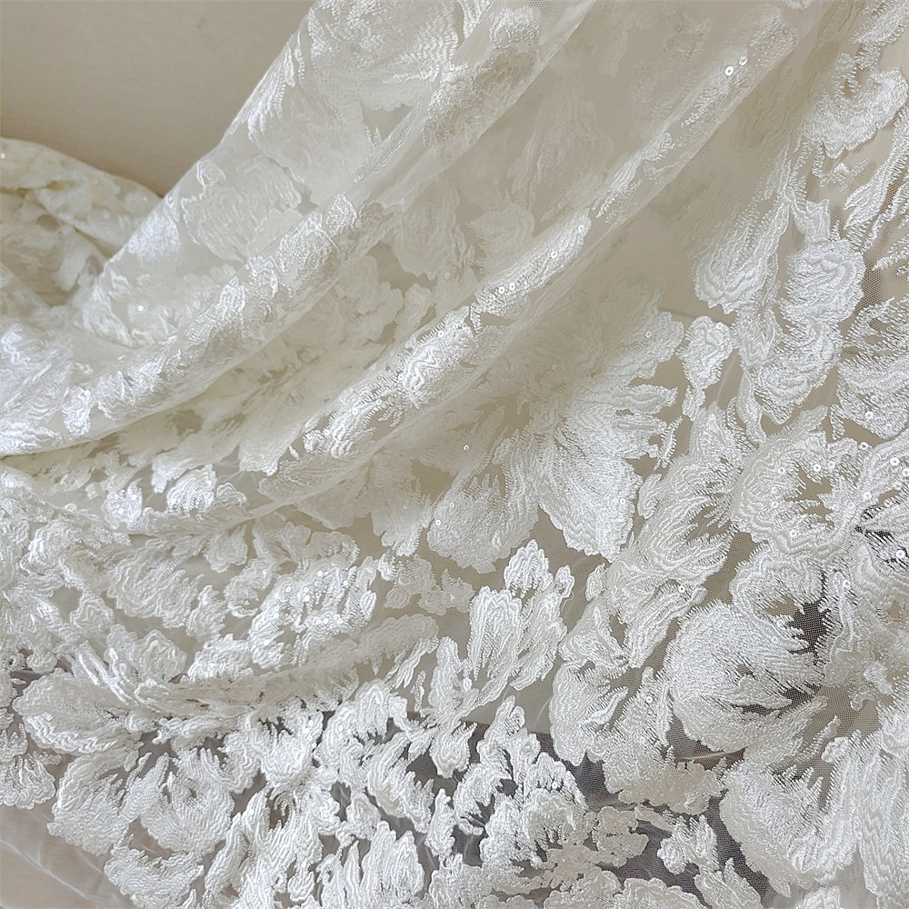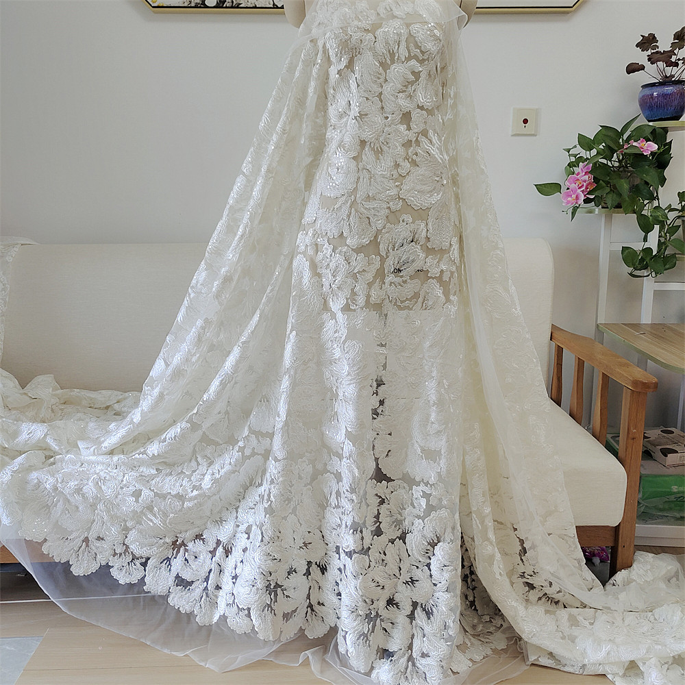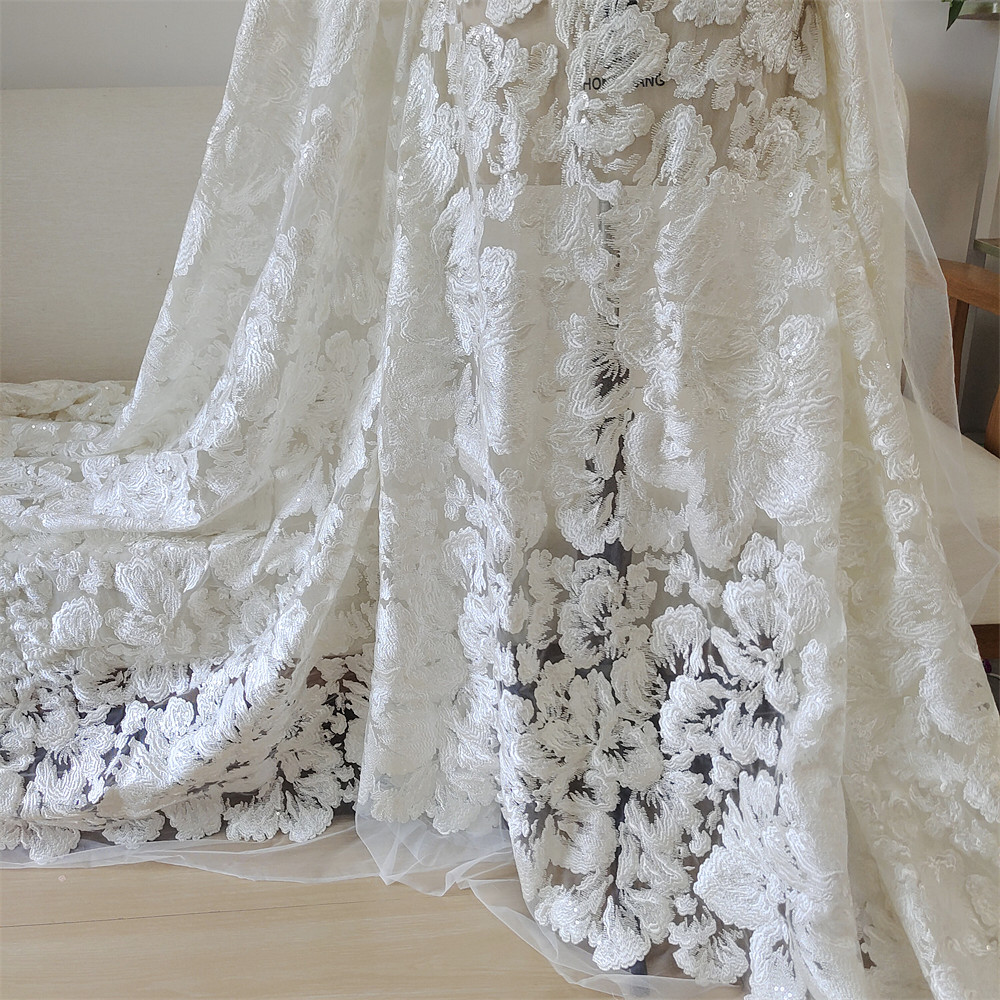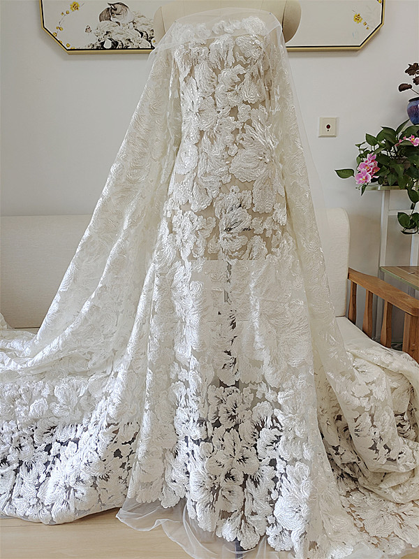 新款外单明星婚纱礼服装连衣裙面布料网纱刺绣花朵手工DIY清仓