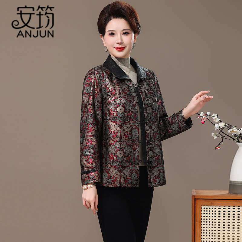 海宁真皮皮衣女装2025秋季新款压花中老年绵羊皮衣外套短款妈妈装