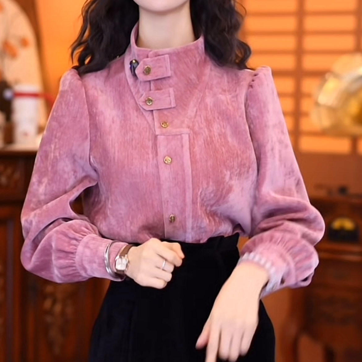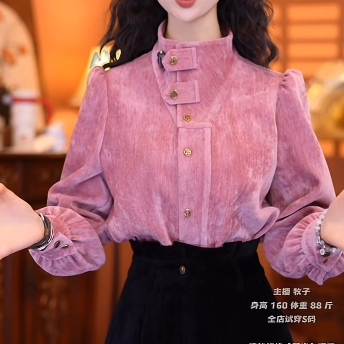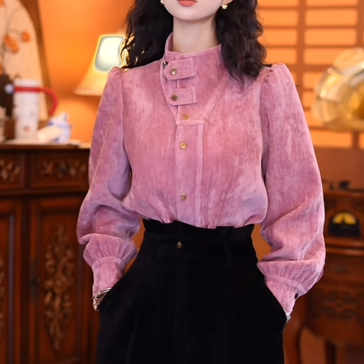 現貨 豆沙甜心 2024冬款复古别致门襟加厚雪尼尔气质大气衬衫女