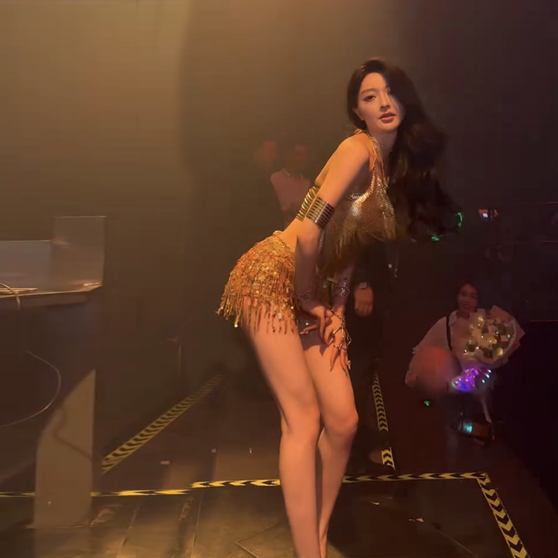 夜店蹦迪短裙套装性感bling挂脖钻链露背吊带背心女流苏亮片短裤