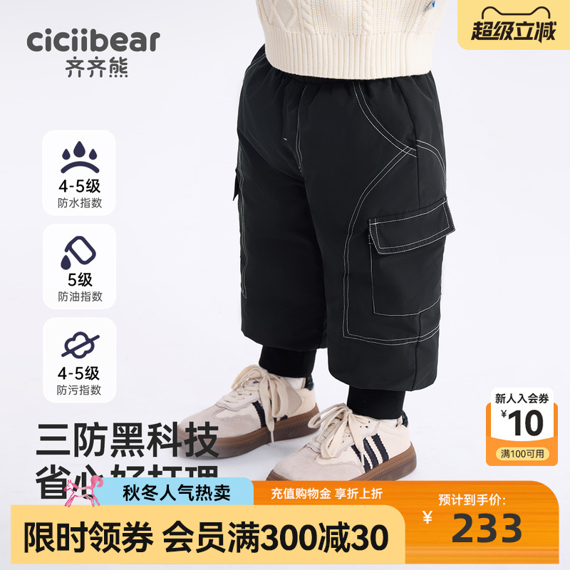 齐齐熊宝宝保暖冬装工装羽绒裤