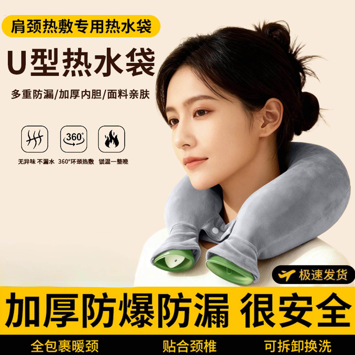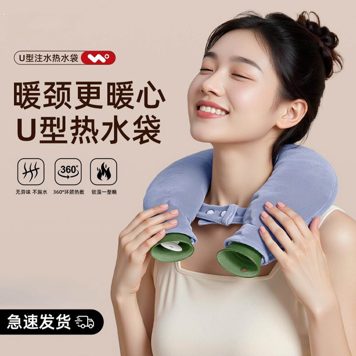 脖子肩颈热水袋注水灌水暖水袋颈椎热敷专用护肩颈部神器U型挂脖