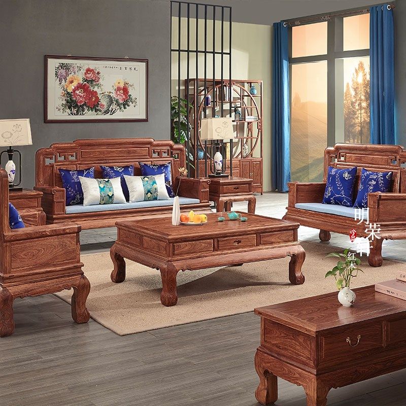 明荣轩红木家具刺猬紫檀沙发古典梨木国色天香实木客厅